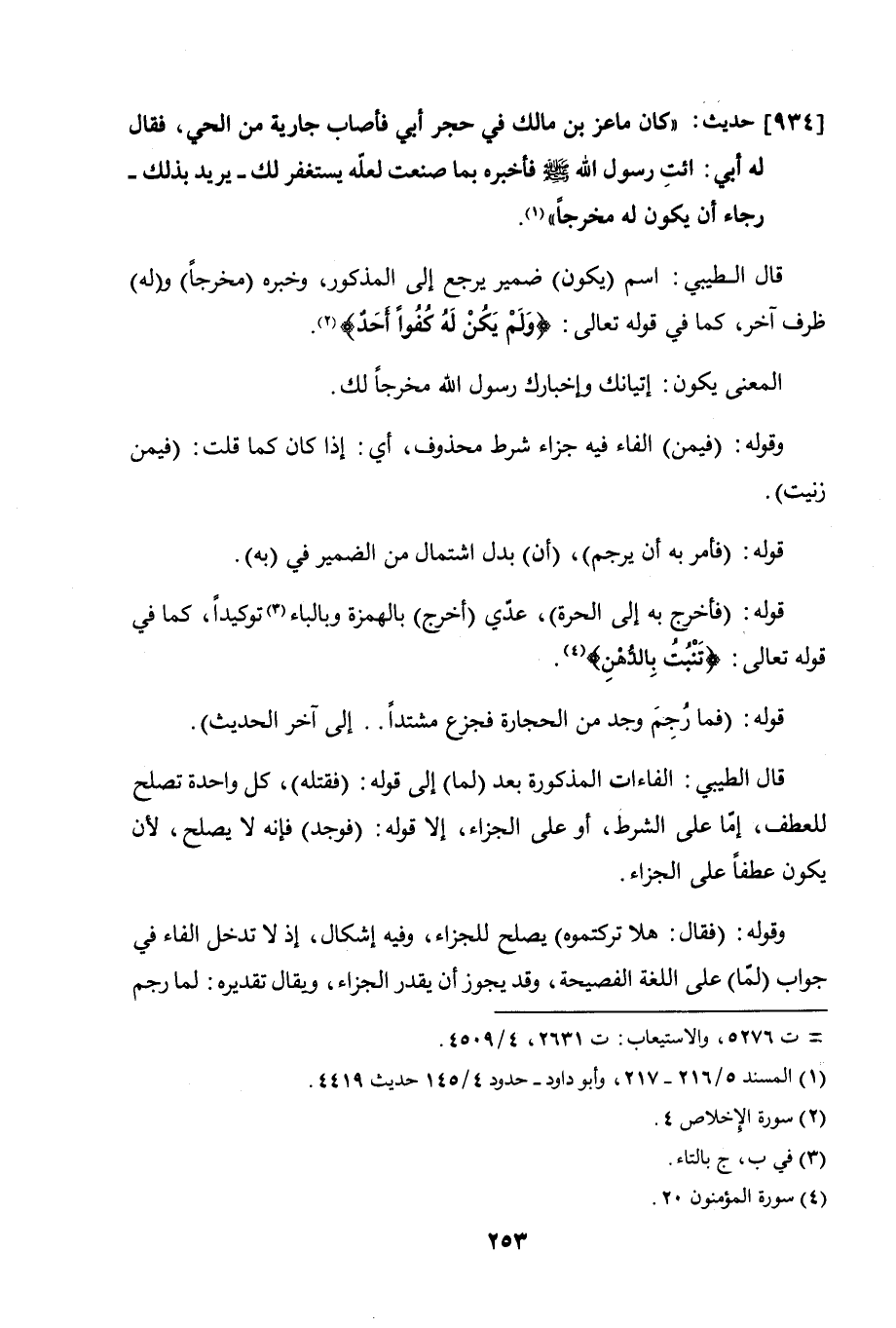 934 - حديث: "كان ماعز بن مالك في حجر أبي فأصاب جارية من الحي، فقال له أبي: ائت رسول الله صلى الله عليه وسلم فأخبره بما صنعت لعلّه يستغفر لك – يريد بذلك – رجاء أن يكون له مخرجًا".