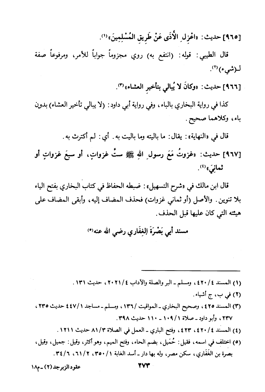 967 - حديث: "غزوتُ مع رسول الله صلى الله عليه وسلم ستّ غزواتٍ، أو سبع غزوات أو ثمانيَ".