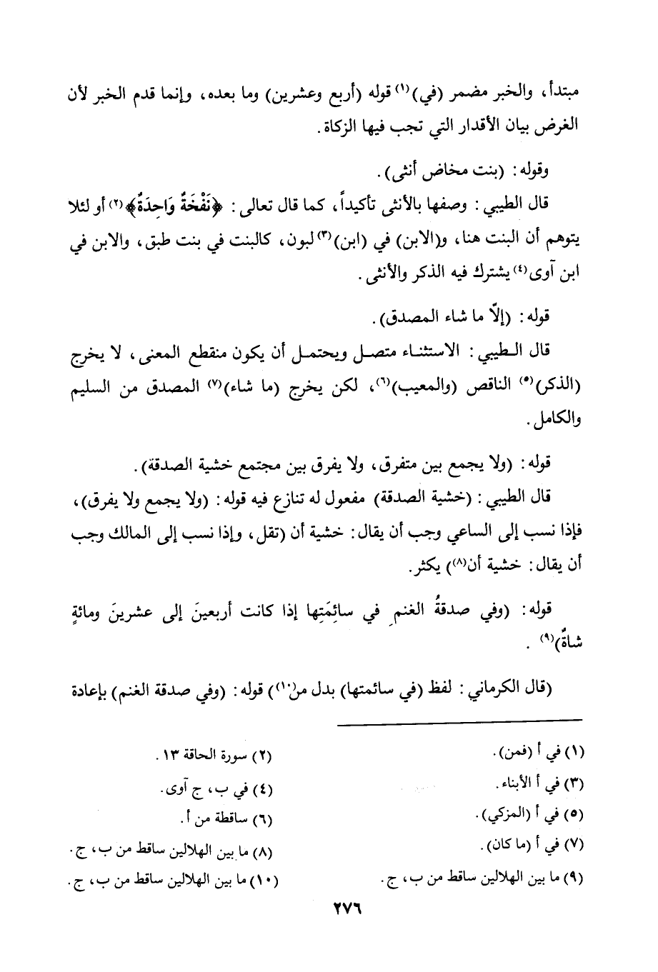 قال الطيبي: الاستثناء متصل ويحتمل أن يكون منقطع المعنى، لا يخرج (الذكر) الناقص والمعيب، لكن يخرج ما شاء المصدق من السليم والكامل.