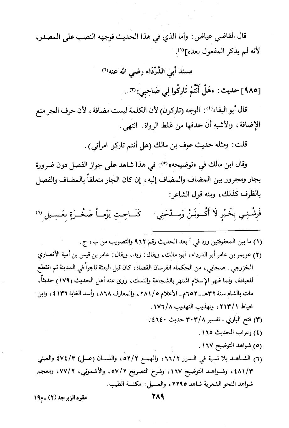 985 - حديث: "هل أنتم تاركوا لي صاحبي".