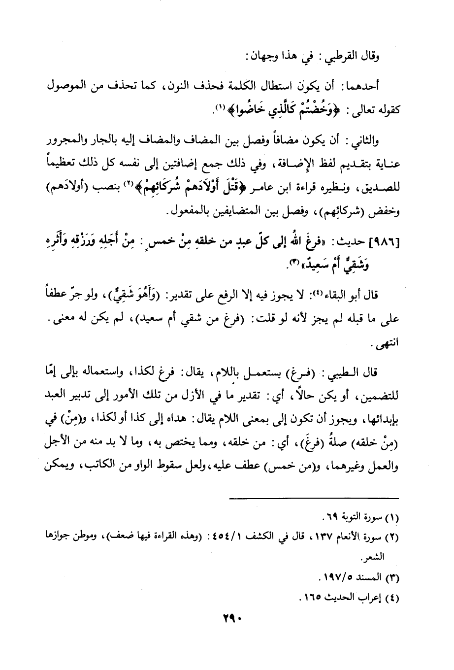 986 - حديث: "فرغ الله إلى كلّ عبدٍ من خلقه من خمسٍ: من أجله ورزقه وأثره وشقي أم سعيد".