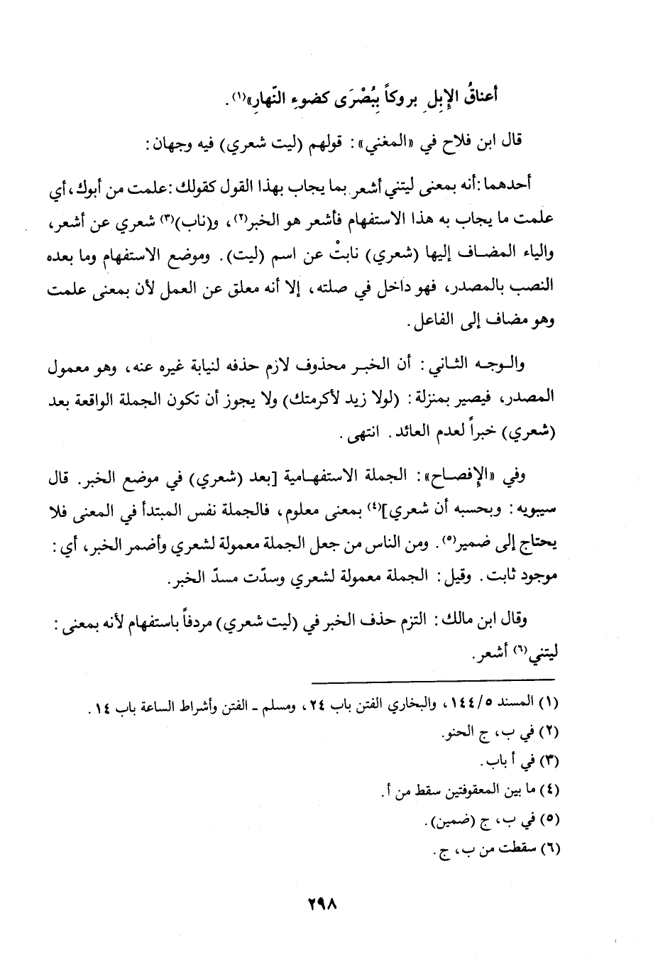قال ابن فلاح في "المغني": قولهم (ليت شعري) فيه وجهان: