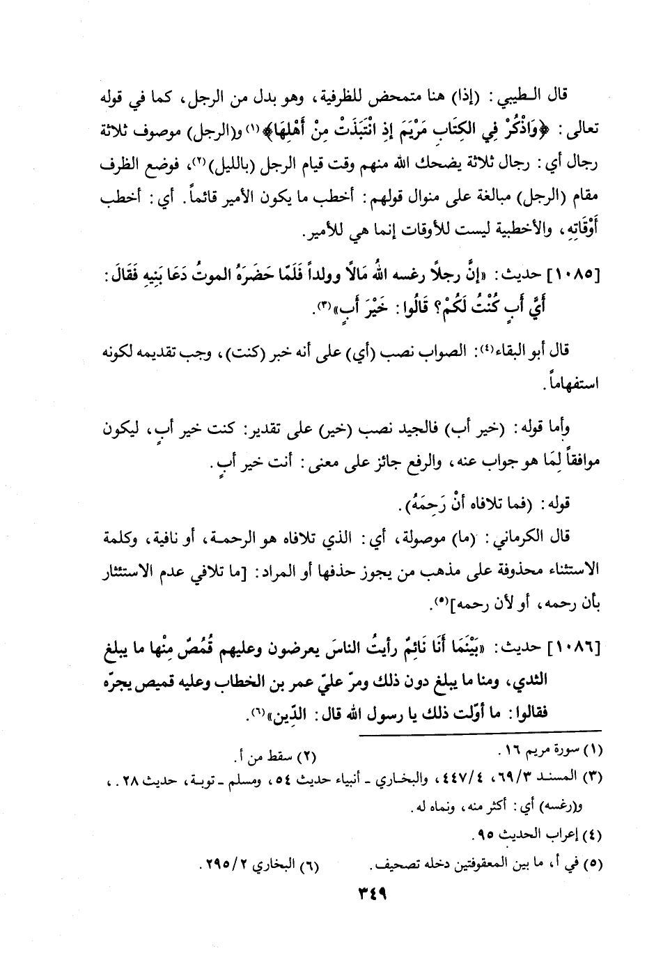 1086 - حديث: "بينما أنا نائم رأيت الناس يعرضون وعليهم قمُصٌ منها ما يبلغ الثدي، ومنها ما يبلغ دون ذلك ومر عليّ عمر بن الخطاب وعليه قميص يجرّه فقالوا: ما أوّلت ذلك يا رسول الله قال: الدين".