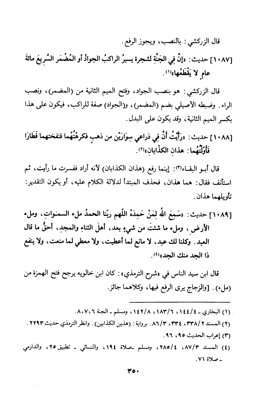 1087 - حديث: إنّ في الجنة لشجرة يسيرُ الراكب الجواد أو المضمر السريع مائة عام لا يقطعها".