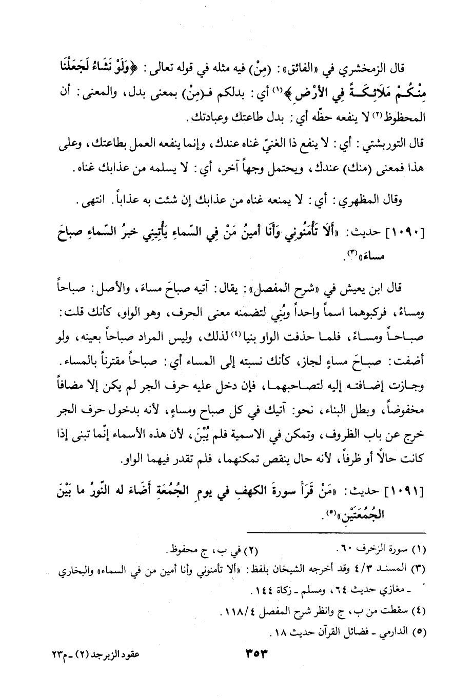 1091 - حديث: "من قرأ سورة الكهف في يوم الجمعة أضاء له النورُ ما بين الجمعتين".