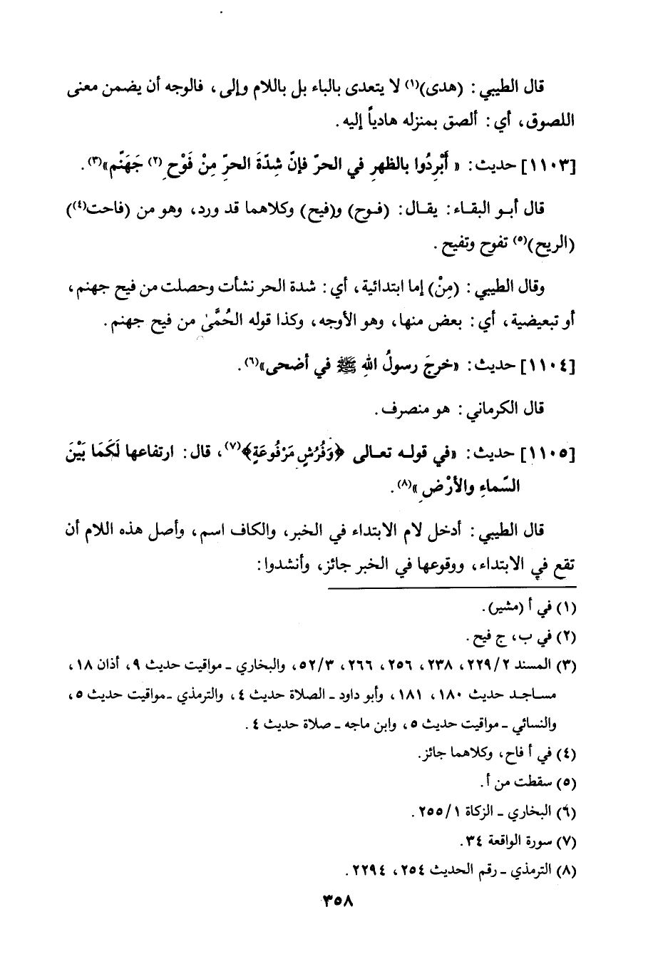 1103 - حديث: "أبردوا بالظهر في الحر فإن شدة الحر من فوح جهنم".