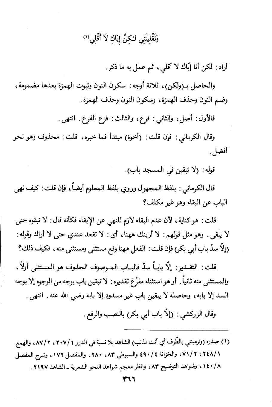 أراد: لكن أنا إيّاك لا أقلي، ثم عمل به ما ذكر.
