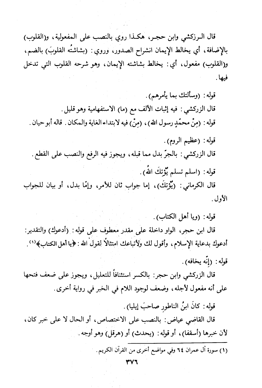 قال ابن حجر: الواو داخلة على مقدر معطوف على قوله: (أدعوك) والتقدير: أدعوك بدعاية الإسلام، وأقول لك ولأتباعك امتثالاً لقول الله: (يا أهل الكتاب).