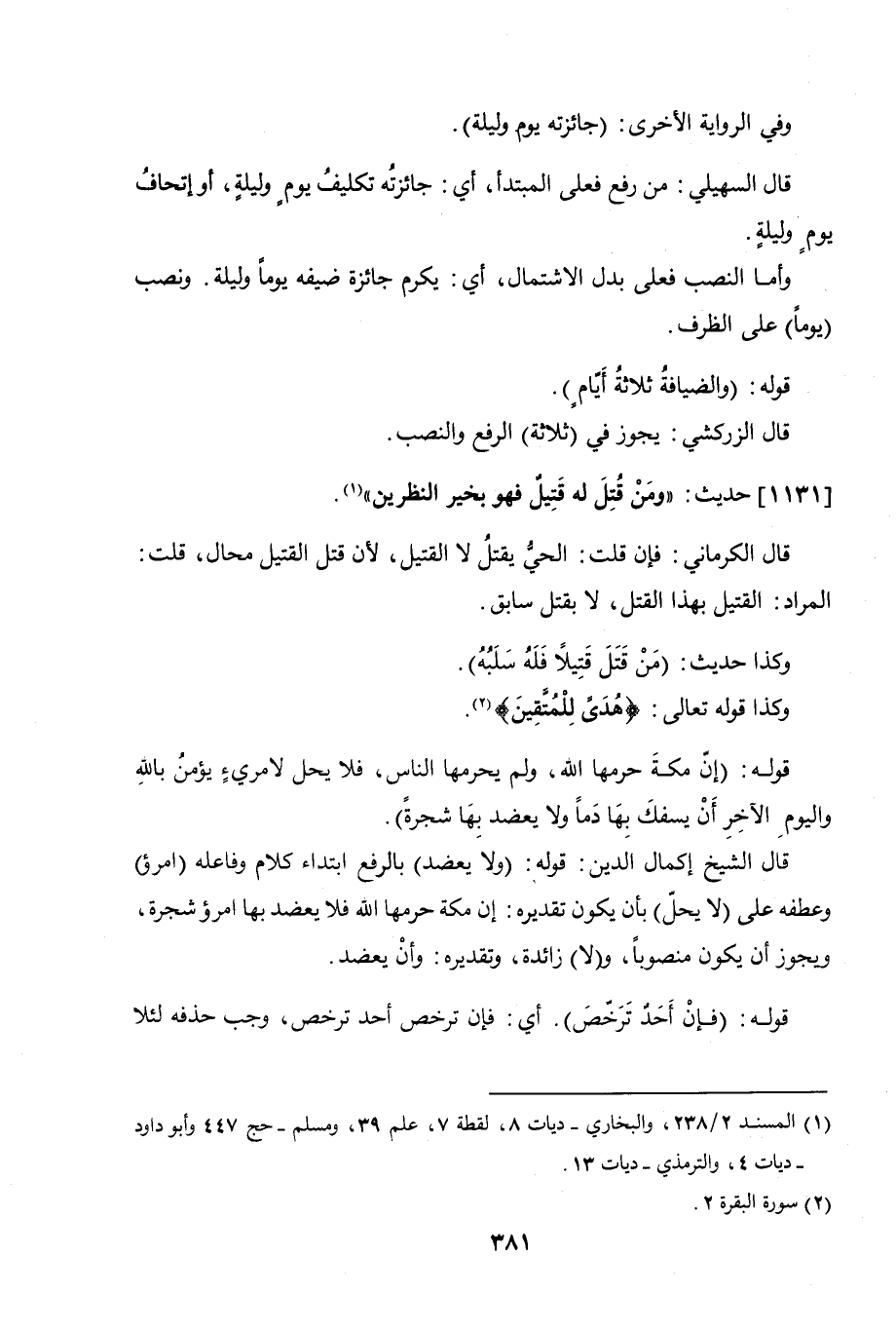 1131 - حديث: "ومن قتل له قتيل فهو بخير النظرين".