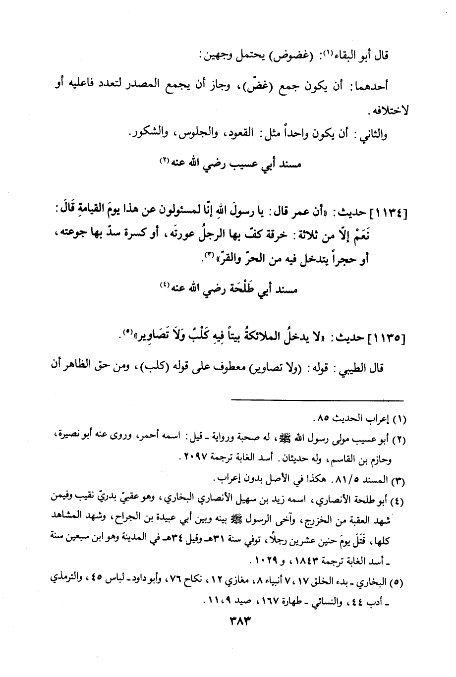1135 - حديث: "لا يدخل الملائكة بيتًا فيه كلبٌ ولا تصاوير".