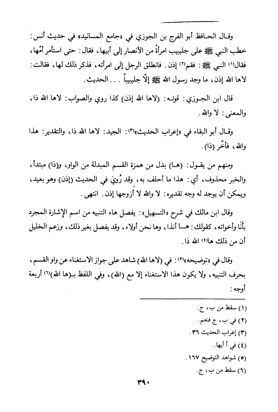 وقال في "توضيحه": في (لاها الله) شاهد على جواز الاستغناء عن واو القسم، بحرف التنبيه، ولا يكون هذا الاستغناء إلا مع (الله)، وفي اللفظ بـ (ها الله) أربعة أوجه: