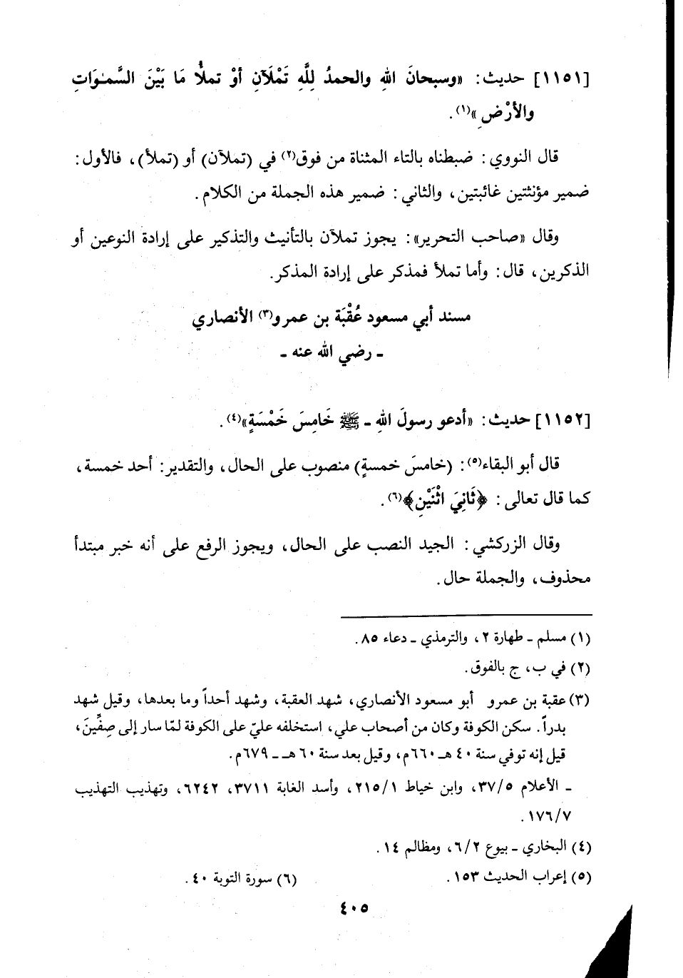 1151 - حديث: "وسبحانَ الله والحمد لله تملآن أو تملأ ما بين السموات والأرض".