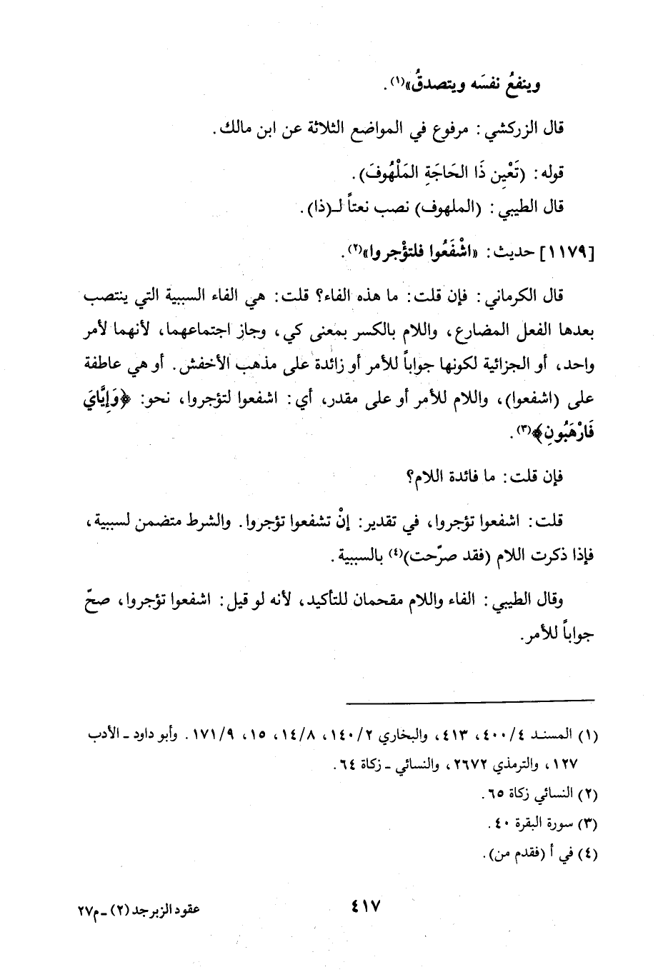 1179 - حديث: "اشفعوا فلتؤجروا".