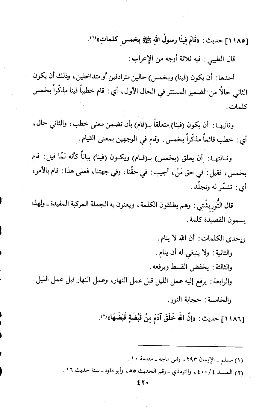 1185 - حديث: "قام فينا رسول الله صلى الله عليه وسلم بخمس كلمات".