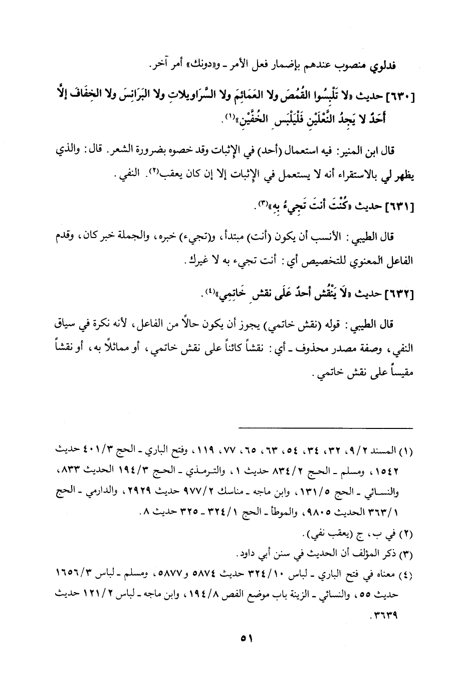 630 - حديث "لا تلبسوا القمص ولا العمائم ولا السراويلات ولا البرانس ولا الخفاف إلا أحدٌ لا يجد النعلين فليلبس الخفين".