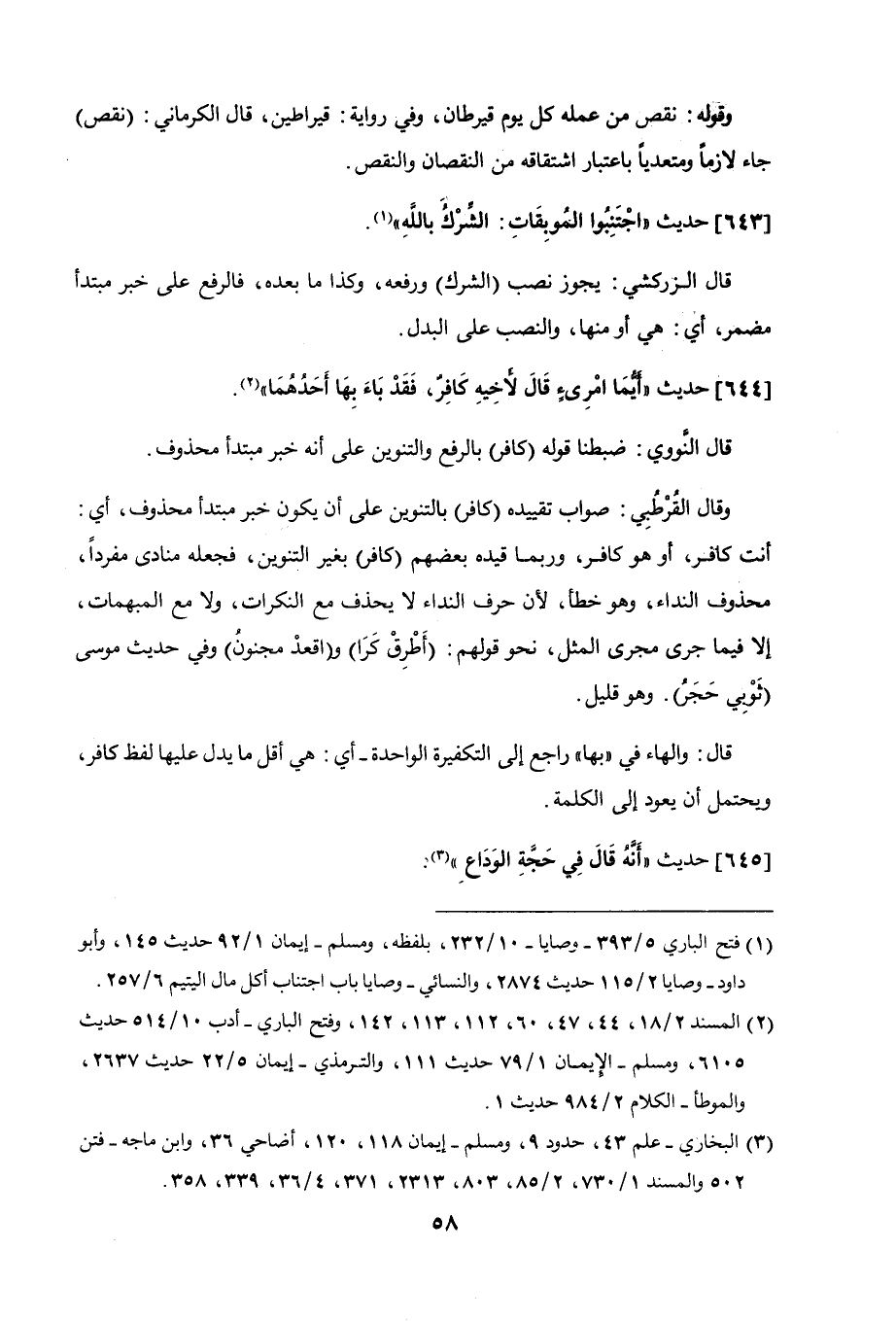 644 - حديث "أيُّما امرئٍ قال لأخيه كافرٌ، فقد باء بها أحدُهما".
