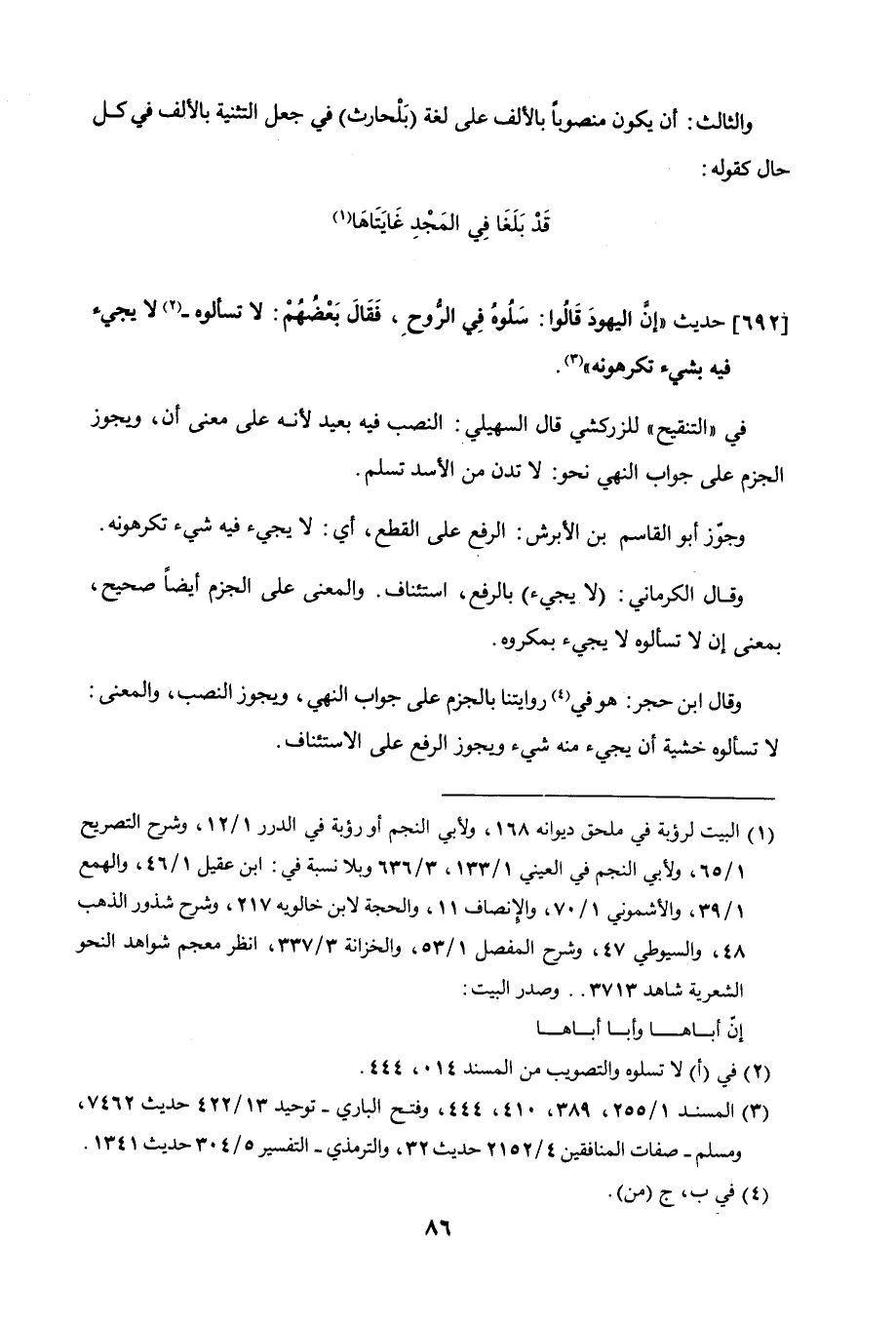 692 - حديث "إنّ اليهود قالوا: سَلُوه في الرُّوح، فقال بعضهم: لا تسألوه – لا يجيء فيه بشيء تكرهونه".