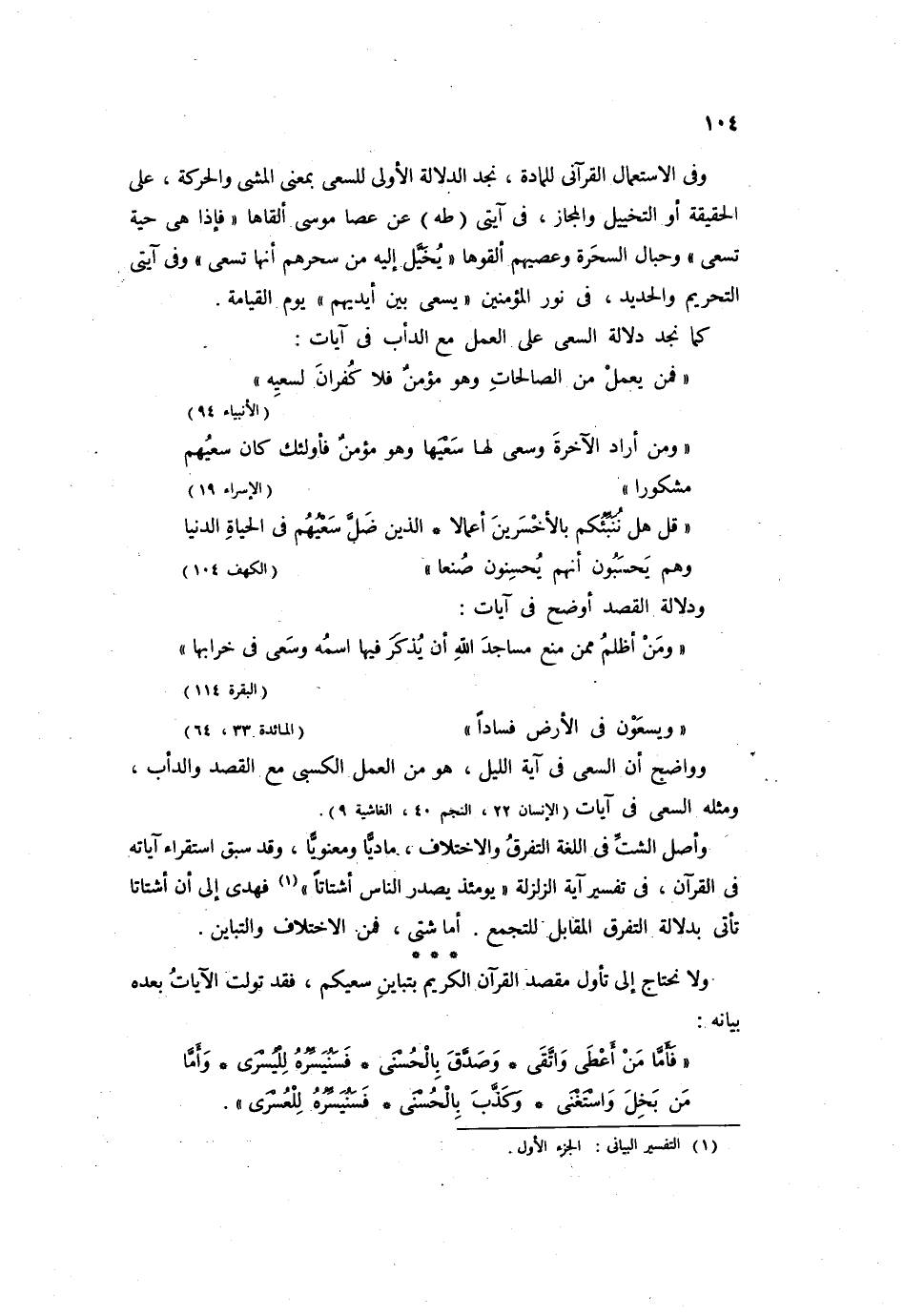 وواضح أن السعي في آية الليل، هو من العمل الكسبي مع القصد والدأب، ومثله السعي في آيات (الإنسان 22، النجم 40، الغاشية 9) .