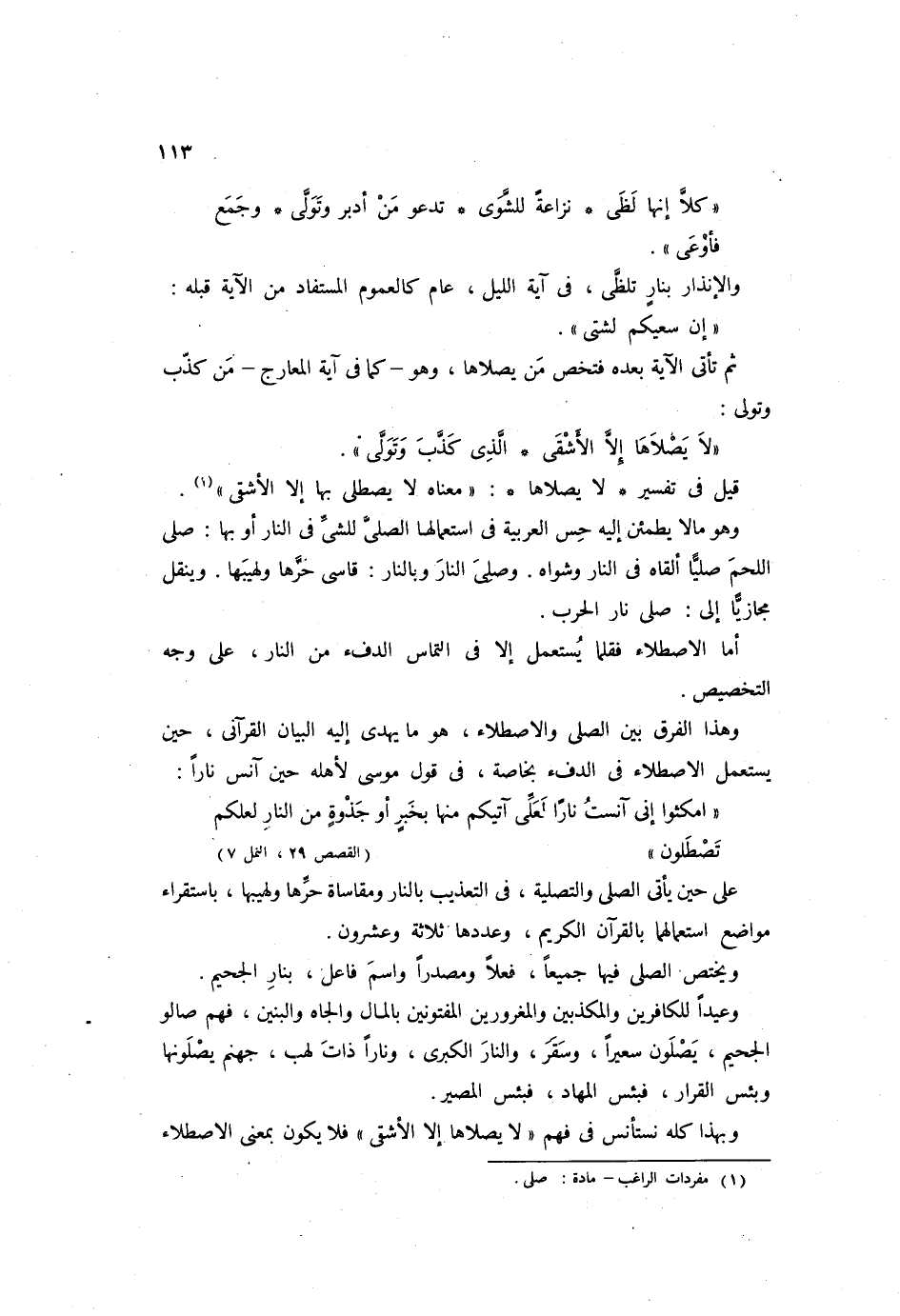 وبهذا كله نستأنس في فهم {لَا يَصْلَاهَا إِلَّا الْأَشْقَى} فلا يكون بمعنى الاصطلاء