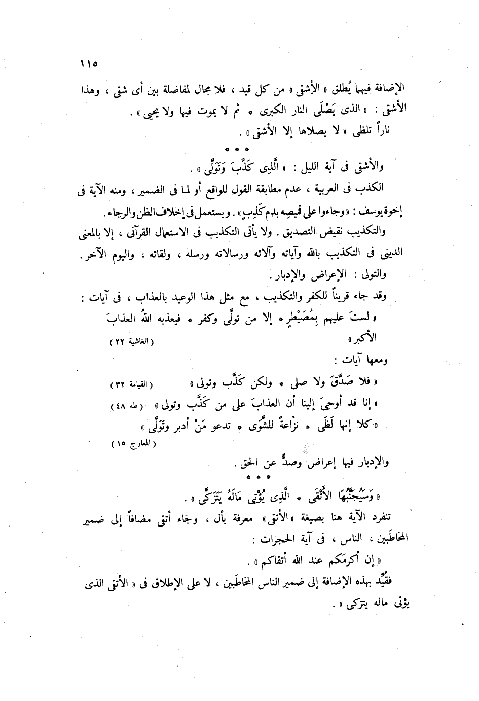 الإضافة فيهما يطلق "الأشقى" من كل قيد، فلا مجال لمفاضلة بين أي شقي، وهذا الأشقى: {الَّذِي يَصْلَى النَّارَ الْكُبْرَى (12) ثُمَّ لَا يَمُوتُ فِيهَا وَلَا يَحْيَى} ناراً تلظى {لَا يَصْلَاهَا إِلَّا الْأَشْقَى} .