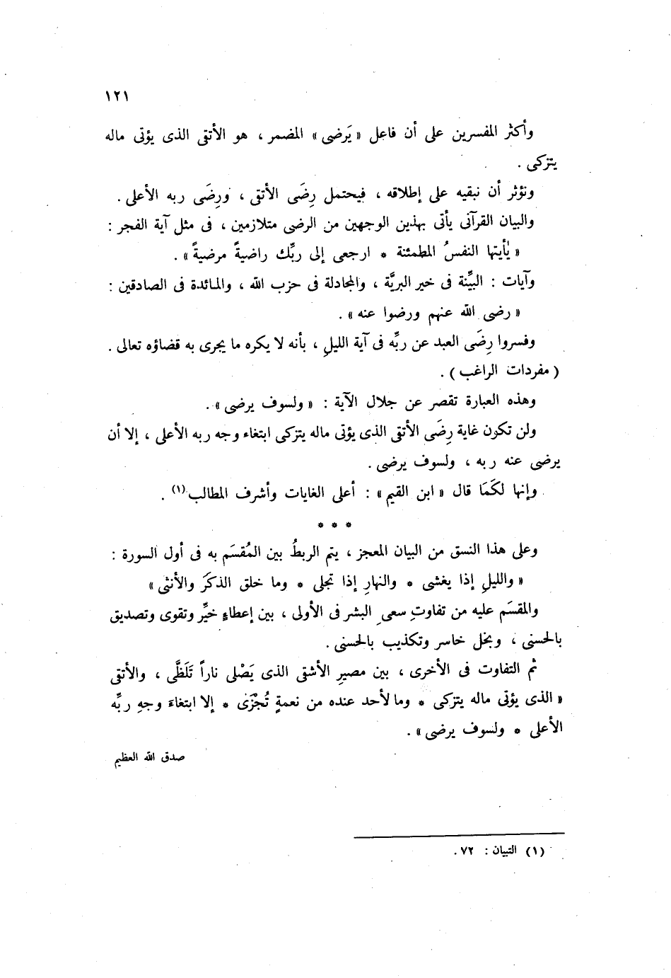 وأكثر المفسرين على أن فاعل "يرضى" المضمر، هو الأتقى الذي يؤتى ماله يتزكى.