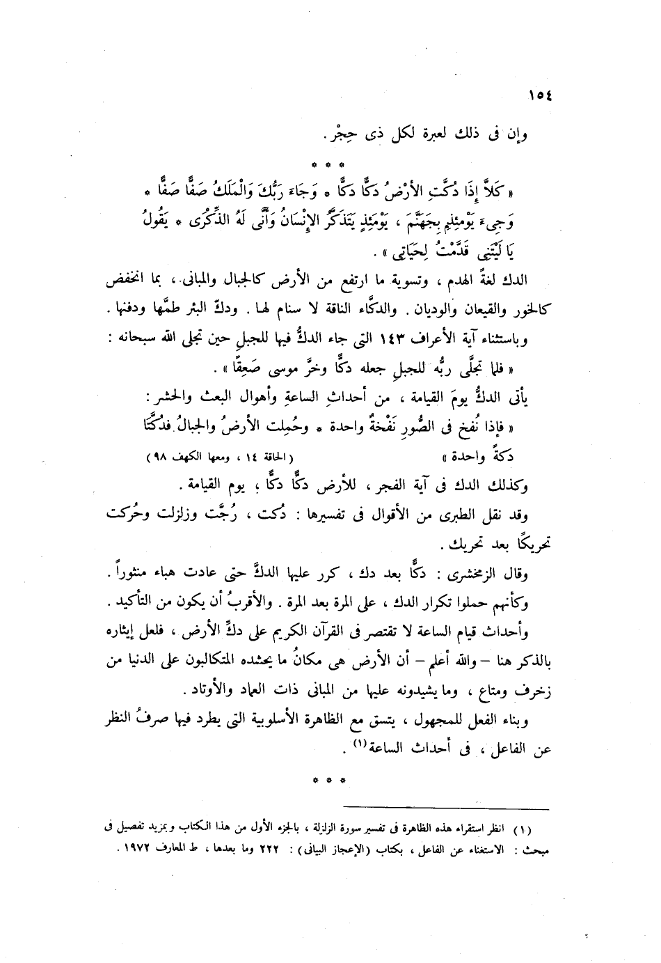 وكذلك الدك في آية الفجر، للأرض دكا دكا، يوم القيامة.
