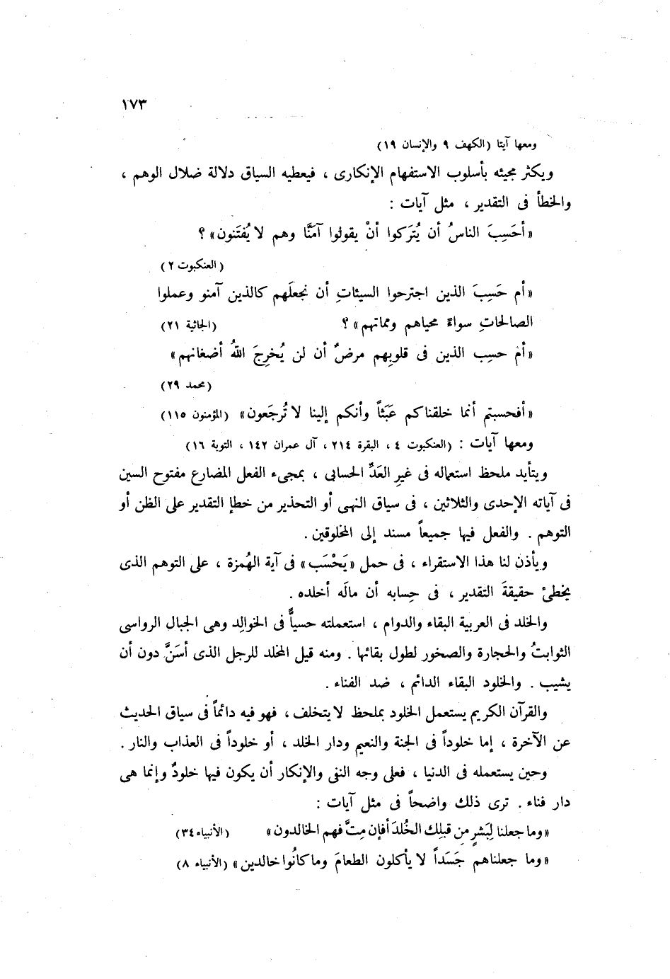ويتأيد ملحظ استعماله في غير العد الحسابي، بمجئ الفعل المضارع مفتوح السين في آياته الإحدى والثلاثين، في سياق النهي أو التحذير من خطأ التقدير على الظن أو التوهم. والفعل فيخا جميعاً مسند إلى المخلوقين.