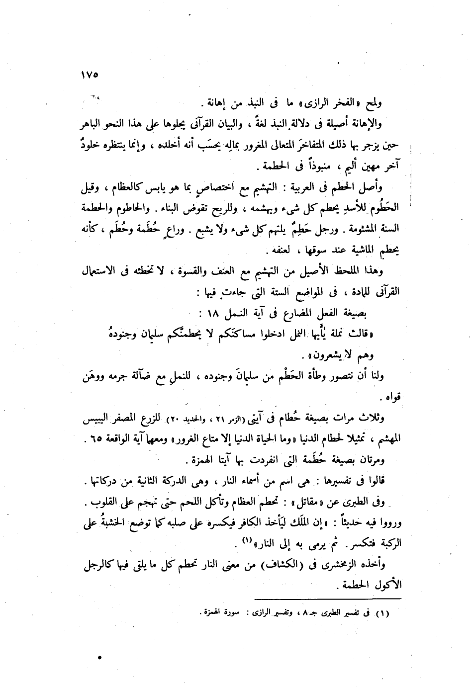 وأخذه الزمخشري في (الكشاف) من معنى النار تحطم كل ما يلقى فيها كالرجل الأكول الحطمة.