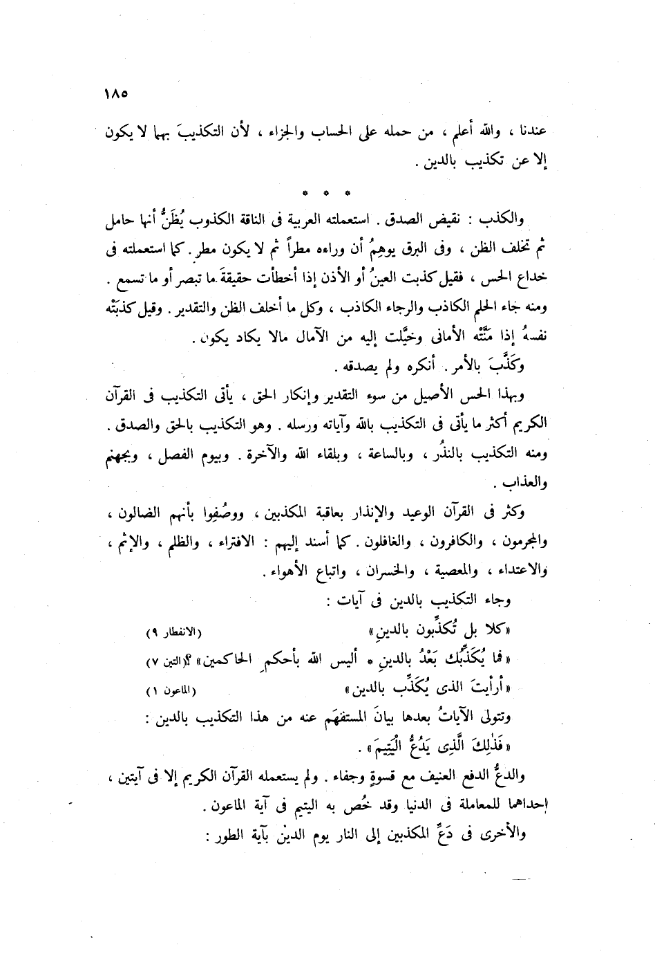 وبهذا الحس الأصيل من سوء التقدير وإنكار الحق، يأتي التكذيب في القرآن الكريم أكثر ما يأتي في التكذيب بالله وآياته ورسله. وهو التكذيب بالحق والصدق.