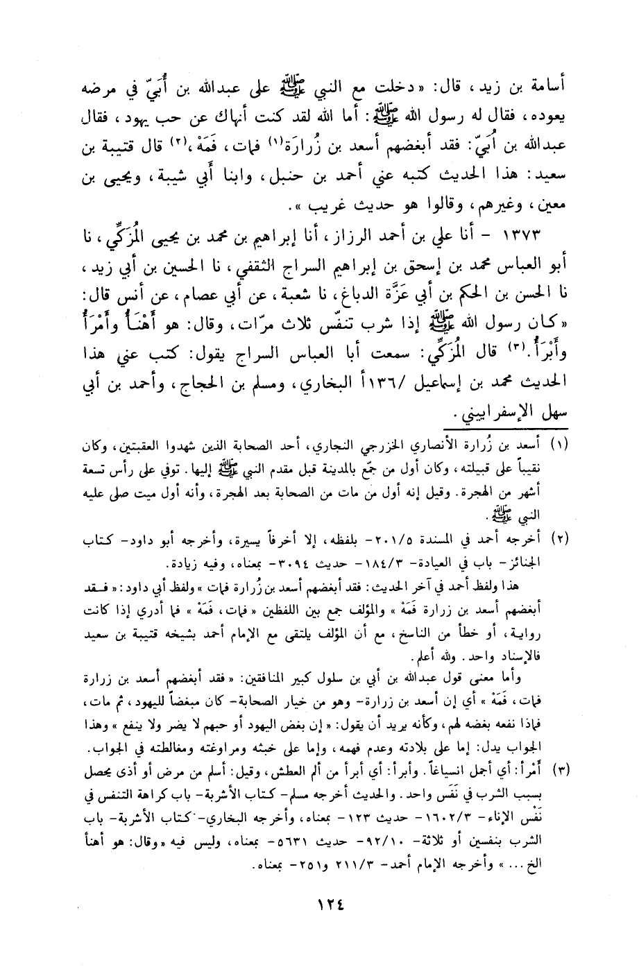 1373 - أنا عَلِيُّ بْنُ أَحْمَدَ الرَّزَّازُ، أنا إِبْرَاهِيمُ بْنُ مُحَمَّدِ بْنِ يَحْيَى الْمُزَكِّي، نا أَبُو الْعَبَّاسِ مُحَمَّدُ بْنُ إِسْحَاقَ بْنِ إِبْرَاهِيمَ السَّرَّاجُ الثَّقَفِيُّ نا الْحُسَيْنُ بْنُ أَبِي زَيْدٍ، نا الْحَسَنُ بْنُ الْحَكَمِ بْنِ أَبِي عَزَّةَ الدِّبَاغُ، نا شُعْبَةُ، عَنْ أَبِي عِصَامٍ، عَنْ أَنَسٍ، قَالَ: §" كَانَ رَسُولُ اللَّهِ صَلَّى اللهُ عَلَيْهِ وَسَلَّمَ إِذَا شَرِبَ تَنَفَّسَ ثَلَاثَ مَرَّاتٍ وَقَالَ: هُوَ أَهْنَأُ وَأَمْرَأُ وَأَبْرَأُ " قَالَ الْمُزَكِّي: سَمِعْتُ أَبَا الْعَبَّاسِ السَّرَّاجَ يَقُولُ: كَتَبَ عَنِّي هَذَا الْحَدِيثَ " مُحَمَّدِ بْنُ إِسْمَاعِيلَ الْبُخَارِيُّ وَمُسْلِمُ بْنُ الْحَجَّاجِ وَأَحْمَدُ بنُ أَبِي سَهْلٍ الْإِسْفَرَايِينِيُّ
