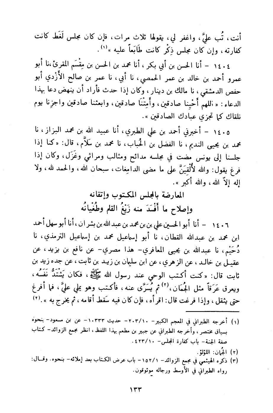 §الْمُعَارَضَةُ بِالْمَجْلِسِ الْمَكْتُوبِ وَإِتْقَانُهُ وَإِصْلَاحُ مَا أَفْسَدَ مِنْهُ زَيْغُ الْقَلَمِ وَطُغْيَانُهُ