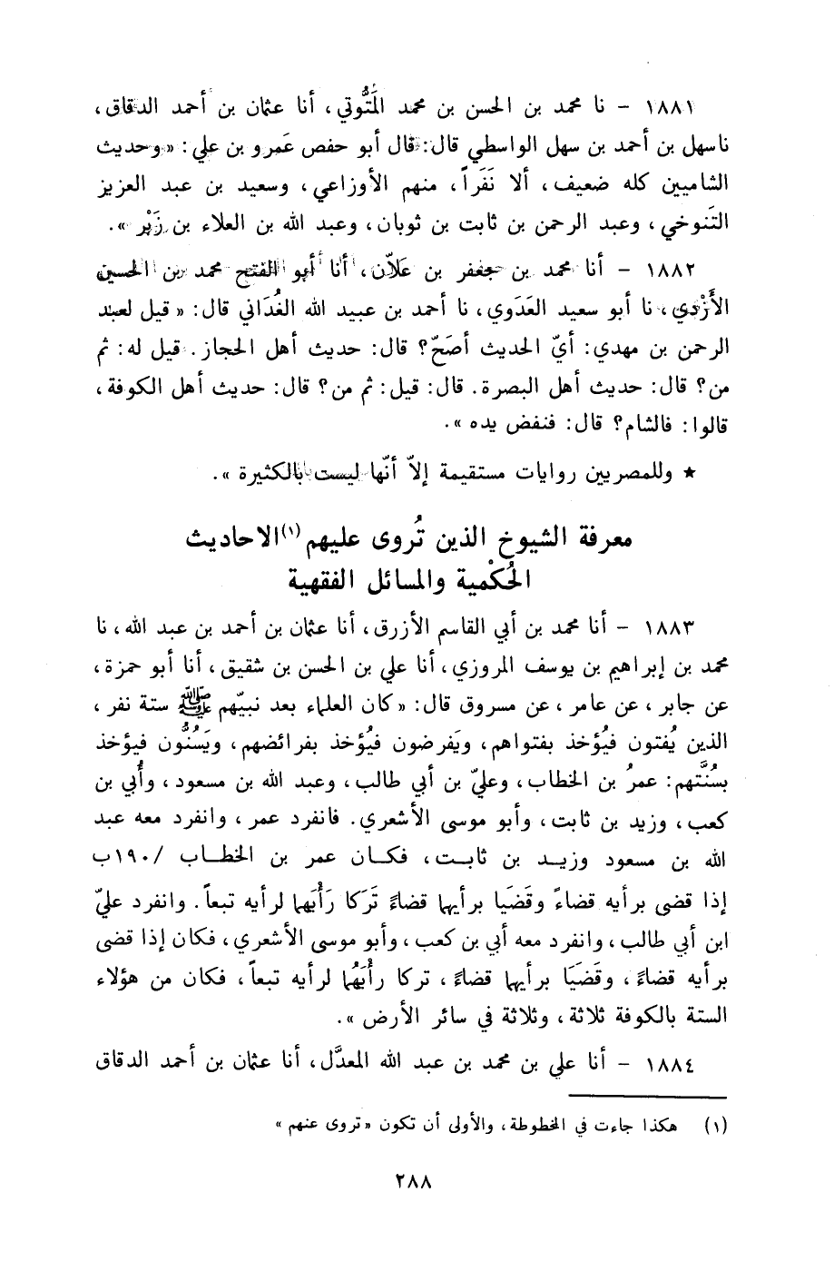 §مَعْرِفَةُ الشُّيُوخِ الَّذِينَ تُرْوَى عَلَيْهِمُ الْأَحَادِيثُ الْحُكْمِيَّةُ وَالْمَسَائِلُ الْفِقْهِيَّةُ