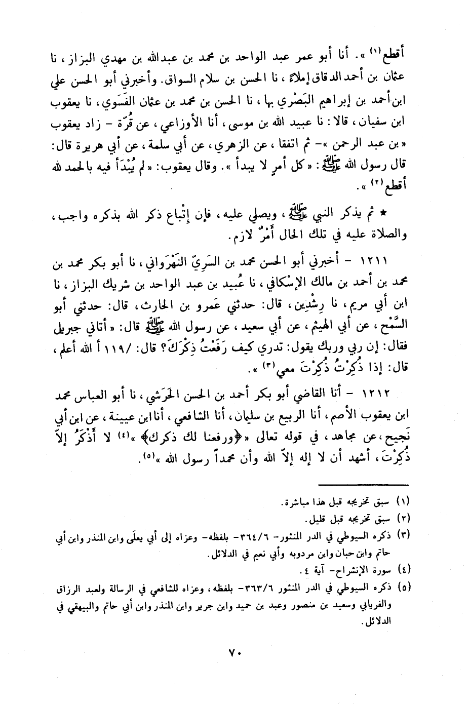 أنا أَبُو عُمَرَ عَبْدُ الْوَاحِدِ بْنُ مُحَمَّدِ بْنِ عَبْدِ اللَّهِ بْنِ مَهْدِيٍّ الْبَزَّازُ نا عُثْمَانُ بْنُ أَحْمَدَ الدَّقَّاقُ إِمْلَاءً نا الْحَسَنُ بْنُ سَلَّامٍ السَّوَّاقُ وَأَخْبَرَنِي أَبُو الْحَسَنِ عَلِيُّ بْنُ أَحْمَدَ بْنِ إِبْرَاهِيمَ الْبَصْرِيُّ بِهَا، نا الْحَسَنُ بْنُ مُحَمَّدِ بْنِ عُثْمَانَ الْفَسَوِيُّ نا يَعْقُوبُ بْنُ سُفْيَانَ قَالَا: نا عُبَيْدُ اللَّهِ بْنُ مُوسَى أنا الْأَوْزَاعِيُّ عَنْ قُرَّةَ زَادَ يَعْقُوبَ بْنِ عَبْدِ الرَّحْمَنِ " ثُمَّ اتَّفَقَا عَنِ الزُّهْرِيِّ عَنْ أَبِي سَلَمَةَ عَنْ أَبِي هُرَيْرَةَ قَالَ: قَالَ رَسُولُ اللَّهِ صَلَّى اللهُ عَلَيْهِ وَسَلَّمَ: «§كُلُّ أَمْرٍ لَا يُبْدَأُ» . وَقَالَ يَعْقُوبُ: «لَمْ يُبْدَأْ فِيهِ بِالْحَمْدِ لِلَّهِ أَقْطَعُ» ثُمَّ يَذْكُرُ النَّبِيَّ صَلَّى اللهُ عَلَيْهِ وَسَلَّمَ وَيُصَلِّي عَلَيْهِ فَإِنَّ إِتْبَاعَ ذِكْرَ اللَّهِ بِذِكْرِهِ وَاجِبٌ وَالصَّلَاةَ عَلَيْهِ فِي تِلْكَ الْحَالِ أَمْرٌ لَازِمٌ