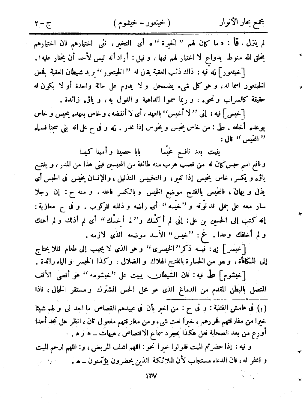 [خيشوم] ط فيه: فإن الشيطان يبيت على "خيشومه" هو أقصى الأنف المتصل بالبطن المقدم من الدماغ الذي هو محل الحس المشترك ومستقر الخيال، فإذا