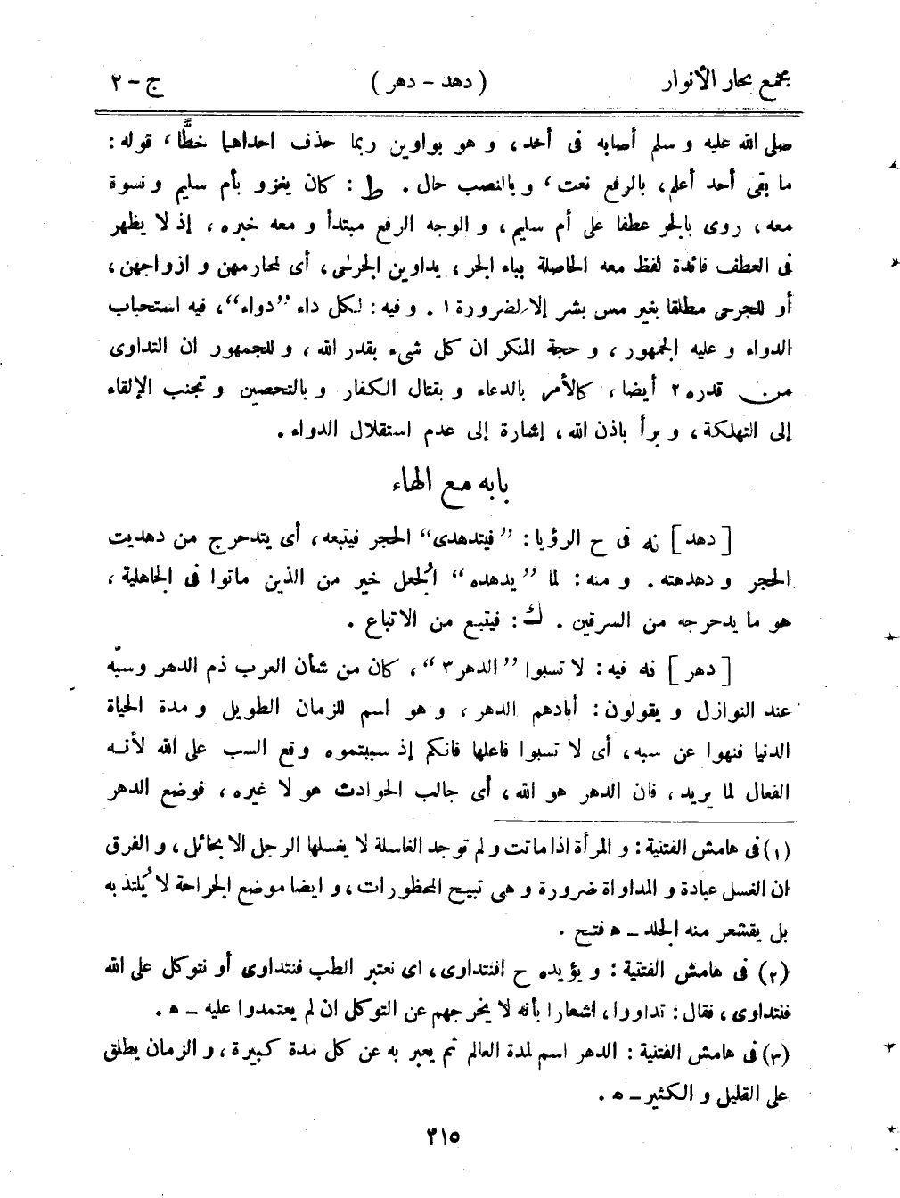 [دهر] نه فيه: لا تسبوا "الدهر"، كان من شأن العرب ذم الدهر وسبه عند النوازل ويقولون: أبادهم الدهر، وهو اسم للزمان الطويل ومدة الحياة الدنيا فنهوا عن سبه، أي لا تسبوا فاعلها فإنكم إذا سببتموه وقع السب على الله لأنه الفعال لما يريد، فإن الدهر هو الله، أي جالب الحوادث هو لا غيره، فوضع الدهر