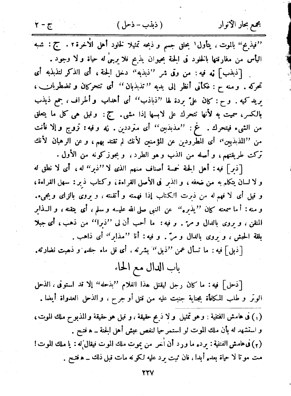 "فيذبح" بالموت، يتأول بحلق جسم وذبحه تمثيلًا لخلود أهل الآخرة. ج: شبه اليأس من مفارقتها بالخلود في الجنة بحيوان يذبح فلا يرجى له حياة ولا وجود.