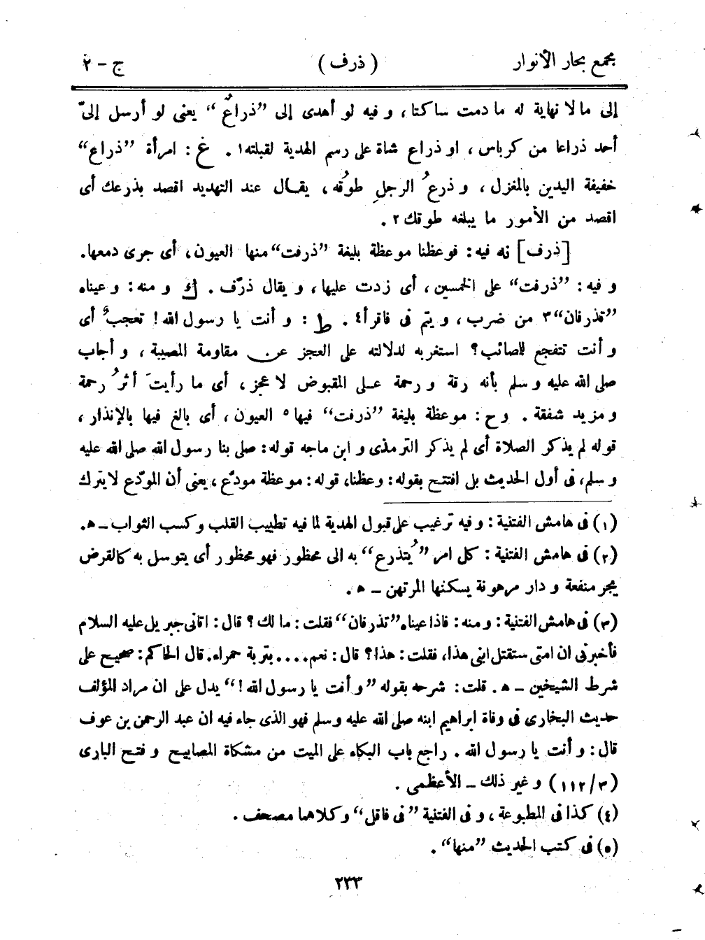 [ذرف] نه فيه: فوعظنا موعظة بليغة "ذرفت" منها العيون، أي جرى دمعها. وفيه: "ذرفت" على الخمسين، أي زدت عليها، ويقال ذرف. ك ومنه: وعيناه "تذرفان" من ضرب، ويتم في فاقرأ. ط: وأنت يا رسول الله! تعجب أي وأنت تتفجع للمصائب؟ استغربه لدلالته على العجز عن مقاومة المصيبة، وأجاب صلى الله عليه وسلم بأنه رقة ورحمة على المقبوض لا عجز، أي ما ريت أثر رحمة ومزيد شفقة. وح: موعظة بليغة "ذرفت" فيها العيون، أي بالغ فيها بالإنذار، قوله لم يذكر الصلاة أ] لم يذر الترمذي وابن ماجه قوله: صلى بنا رسول الله صلى الله عليه وسلم في أول الحديث بل افتتح بقوله: وعظنا، قوله: موعظة مودع، يعني أن المودع لا يترك