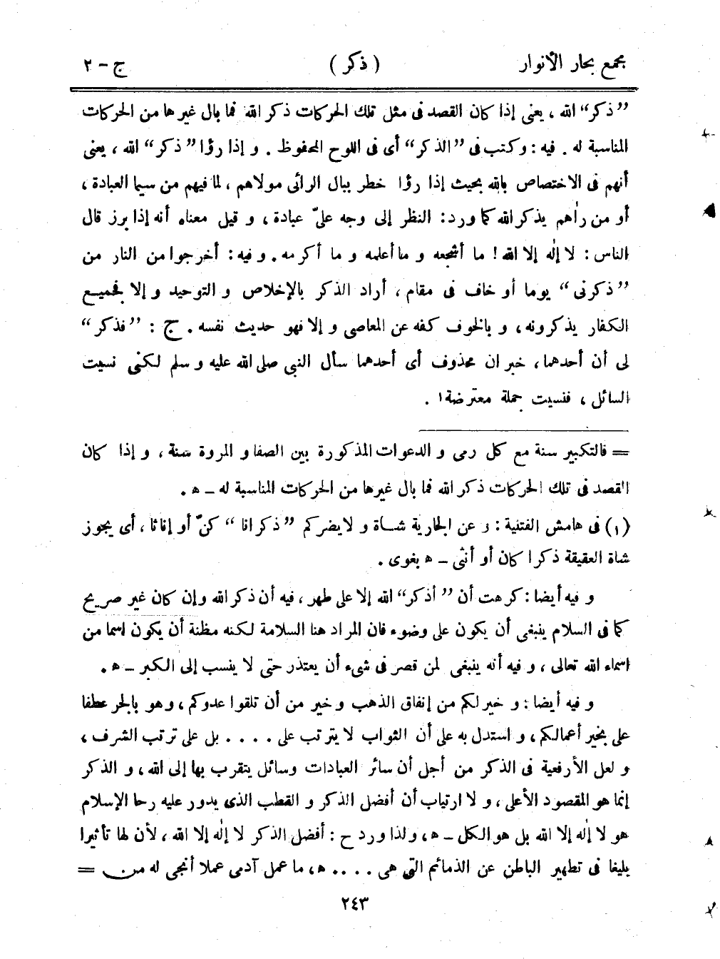 "ذكر" الله، يعني إذا كان القصد في مثل تلك الحركات ذكر الله فما بال غيرها من الحركات المناسبة له. فيه: وكتب في "الذكر" أي في اللوح المحفوظ. وإذا رؤا "ذكر" الله، يعني أنهم في الاختصاص بالله بحيث إذا رؤا خطر ببال الرائي مولاهم، لما فيهم من سيما العبادة، أو من رآهم يذكر الله كما ورد: النظر إلى وجه علىّ عبادة، وقيل معناه أنه إذا برز قال الناس: لا إله إلا الله! ما أشجعه وما أعلمه وما أكرمه. وفيه: أخرجوا من النار من "ذكرني" يومًا أو خاف في مقام، أراد الذكر بالإخلاص والتوحيد وألا فجميع الكفار يذكرونه، وبالخوف فه عن المعاصي وإلا فهو حديث نفسه. ج: "فذكر" لي أن أحدهما، خبر أن محذوف أي أحدهما سأل النبي صلى الله عليه وسلم لكني نسيت السائل، فنسيت جملة معترضة.