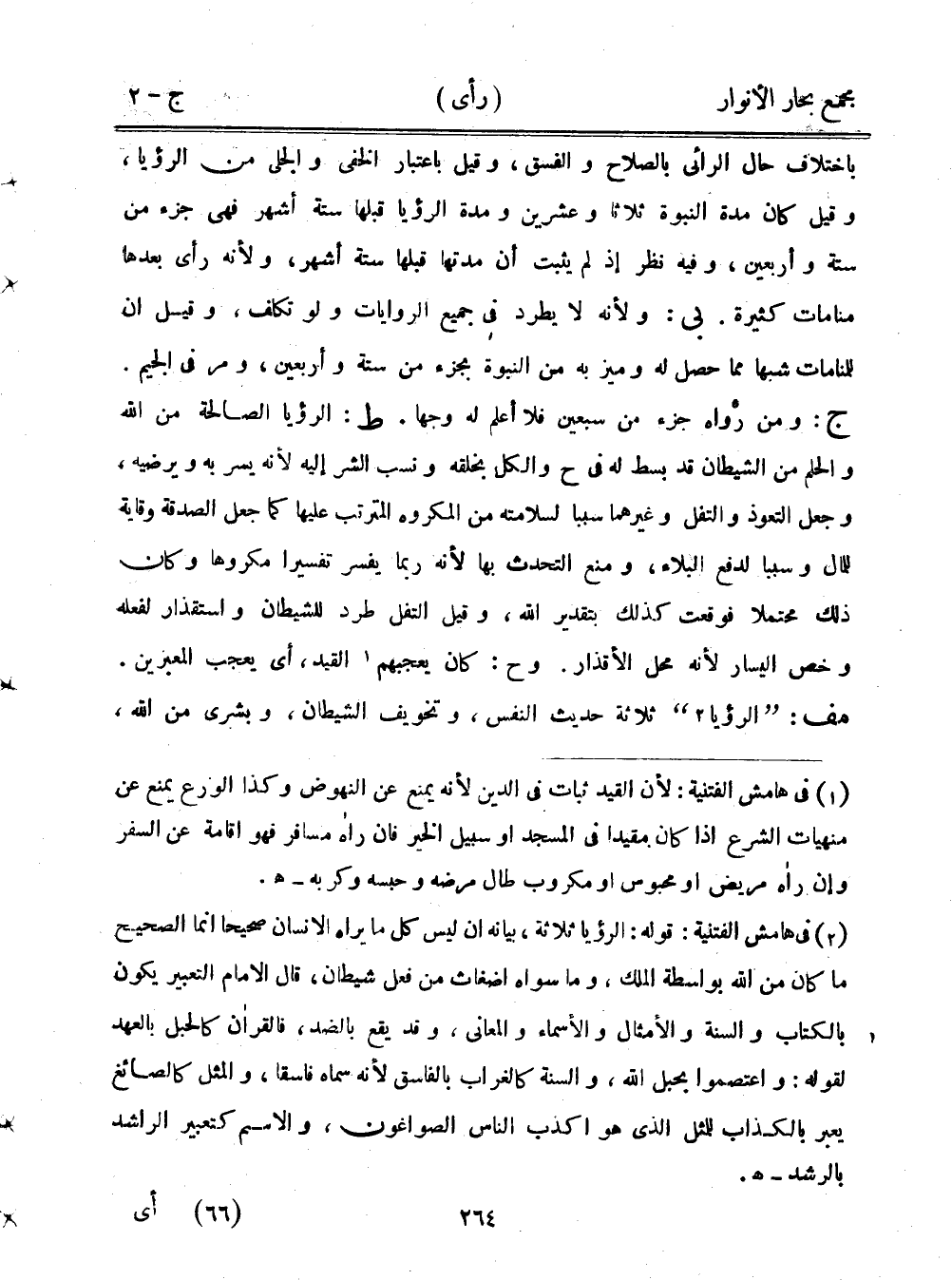 باختلاف حال الرائي بالصلاح والفسق، وقيل باعتبار الخفي والجلي من الرؤيا، وقيل كان مدة النبوة ثلاثًا وعشرين ومدة الرؤيا قبلها ستة أشهر فهي جزء من ستة وأربعين، وفيه نظر إذ لم يثبت أن مدتها قبلها ستة أشهر، ولأنه رأي بعدها منامات كثيرة. بي: ولأنه لا يطرد في جميع الروايات ولو تكلف، وقيل أن للمنامات شبها مما حصل له وميز به من النبوة بجزء من ستة وأربعين، ومر في الجيم. ج: ومن رواه جزء من سبعين فلا أعلم له وجها. ط: الرؤيا الصالحة من الله والحلم من الشيطان قد بسط له في ح والكل بخلقه ونسب الشر إليه لأنه يسر به ويرضيه، وجعل التعوذ والتفل وغيرهما سببًا لسلامته من المكروه المترتب عليها كما جعل الصدقة وقاية للمال وسببًا لدفع البلاء، ومنع التحدث بها لأنه ربما يفسر تفسيرًا مكروهًا وكان ذلك محتملًا فوقعت كذلك بتقدير الله، وقيل التفل طرد للشيطان واستقذار لفعله وخص اليسار لأنه محل الأقذار. وح: كان يعجبهم القيد، أي يعجب المعيزين. مف: "الرؤيا" ثلاثة حديث النفس، وتخويف الشيطان، وبشرى من الله،
