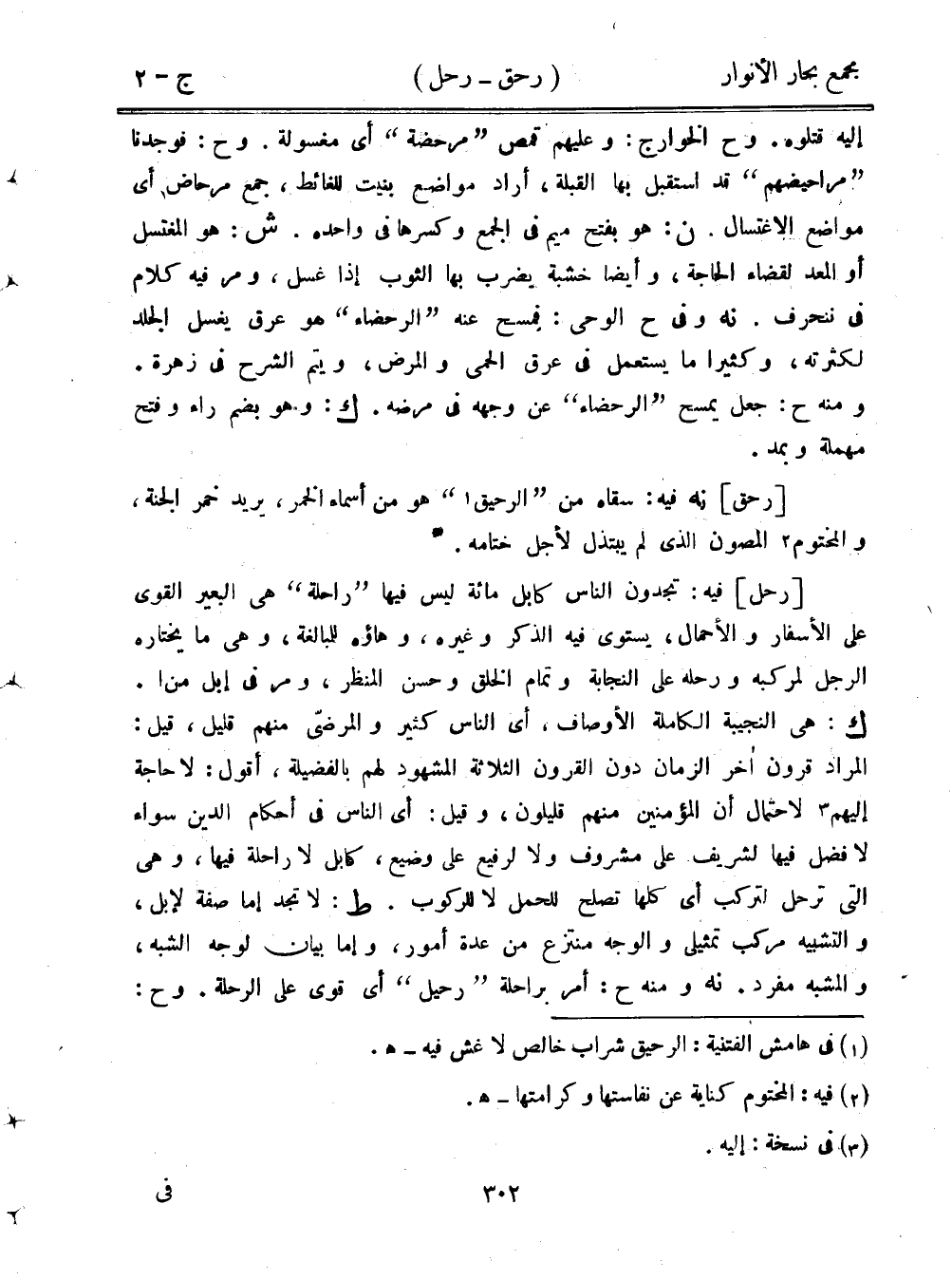 إليه قتلوه. وح الخوراج: وعليهم قمص "مرحضة" أي مغسولة. وح: فوجدنا "مراحيضهم" قد استقبل بها القبلة، أراد مواضع بنيت للغائط، جمع مرحاض أي مواضع الاغتسال. ن: هو بفتح ميم في الجمع وكسرها في واحده. ش: هو المغتسل أو المعد لقضاء الحاجة، وأيضًا خشبة يضرب بها الثوب إذا غسل، ومر فيه كلام في نحرف. نه وفي ح الوحي: فمسح عنه "الرحضاء" هو عرق يغسل الجلد لكثرته، وكثيرًا ما يستعمل في عرق الحمى والمرض، ويتم الشرح في زهرة. ومنه ح: جعل يمسح "الرحضاء" عن وجهه في مرضه. ك: وهو بضم راء وفتح مهملة وبمد.