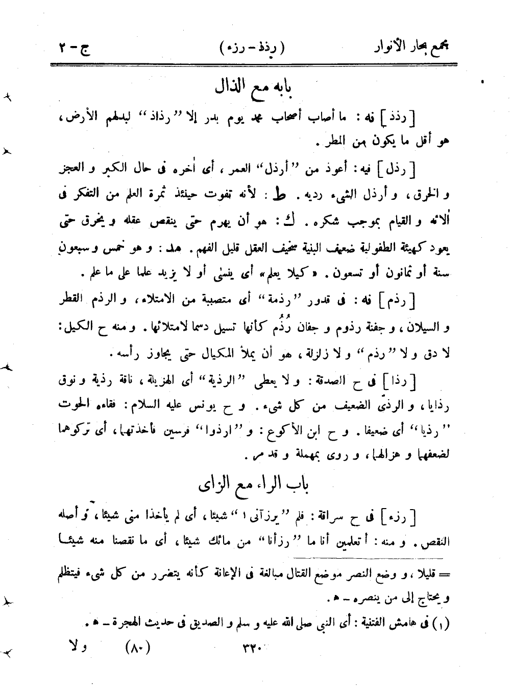 [رذا] في ح الصدقة: ولا يعطي "الرذية" أي الهزيلة، ناقة رذية ونوق رذايان والرذى الضعيف من كل شيء. وح يونس عليه السلام: فقاءه الحوت "رذيا" أي ضعيفا. وح ابن الأكوع: و"ارذوا" فرسين فأخذتهما، أي تركوها لضعفهما وهزالهما، وروى بمهملة وقد مر.