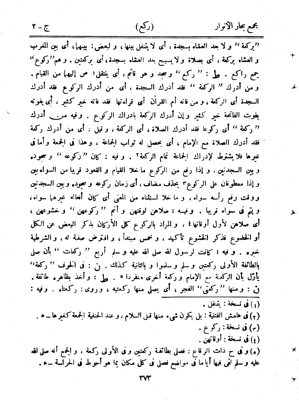 "بركعة" ولا بعد العشاء بسجدة، أي لا يتنفل بينها، ولبعض: بينهما، أي بين المغرب والعشاء بركعة، أي بصلاة ولا يسبح بعد العشاء بسجدة، أي بركعتين. وهم "ركوع" جمع راكع. ط: "ركع" وسجد وهو قائم، أي ينتقل ص إليهما من القيام. ومن أدرك "الركعة" فقد أدرك السجدة، أي من أدرك الركوع فقد أدرك السجدة أي الركعة، ومن فاته أم القرآن أي قراءتها فقد فاته خير كثير، أي يفوته يفوت الفاتحة خير كثير وإن أدرك الركعة بإدراك الركوع. وفيه من أدرك "ركعة" أي ركوعًا فقد أدرك الصلاة، أي الركعة، وقيل: أي من أدرك ركعة فقد أدرك الصلاة مع الإمام، أي يحصل له ثواب الجماعة، وهذا في الجمعة وأما في غيرها فلا يشترط لإدراك الجماعة تمام الركعة. وفيه: كان "ركوعه" وسجوده وبين السجدتين، وإذا رفع من الركوع ما خلا القيام والقعود قريبًا من السواء بني وإذا معطوفان على الركوع بحذف مضاف، أي زمان ركوعه وسجوده وبين السجدتين ووقت رفع رأسه سواء، وما خلا استثناء من المعنى أي كان أفعاله غيرهما سواء، ويتم في سواء قريبًا. وفيه: صلاهن لوقتهن وأتم "ركوعهن" وخشوعهن، أي صلاهن لأول أوقاتها، والمراد بالركع كل الأركان بذكر البعض عن الكل أو الخضوع فذكر الخشوع تأكيد، وخمس مبتدأ، وافترض صفة له، والشرطية خبره. وفيه: كانت لرسول الله صلى الله عليه وسلم أربع "ركعات" بأن صلى بالطائفة الأولى ركعتين وسلم وسلموا وبالثانية كذلك. ن: في الخوف "ركعة" يأول بأن الركعة مع الإمام وركعة أخرى منفردًا. ط: وأخذ بظاهره طائفة. ن: ومنها "ركعتي" الفجر، أي يصلي منها ركعتيه، وروى: ركعتاه. وفيه: