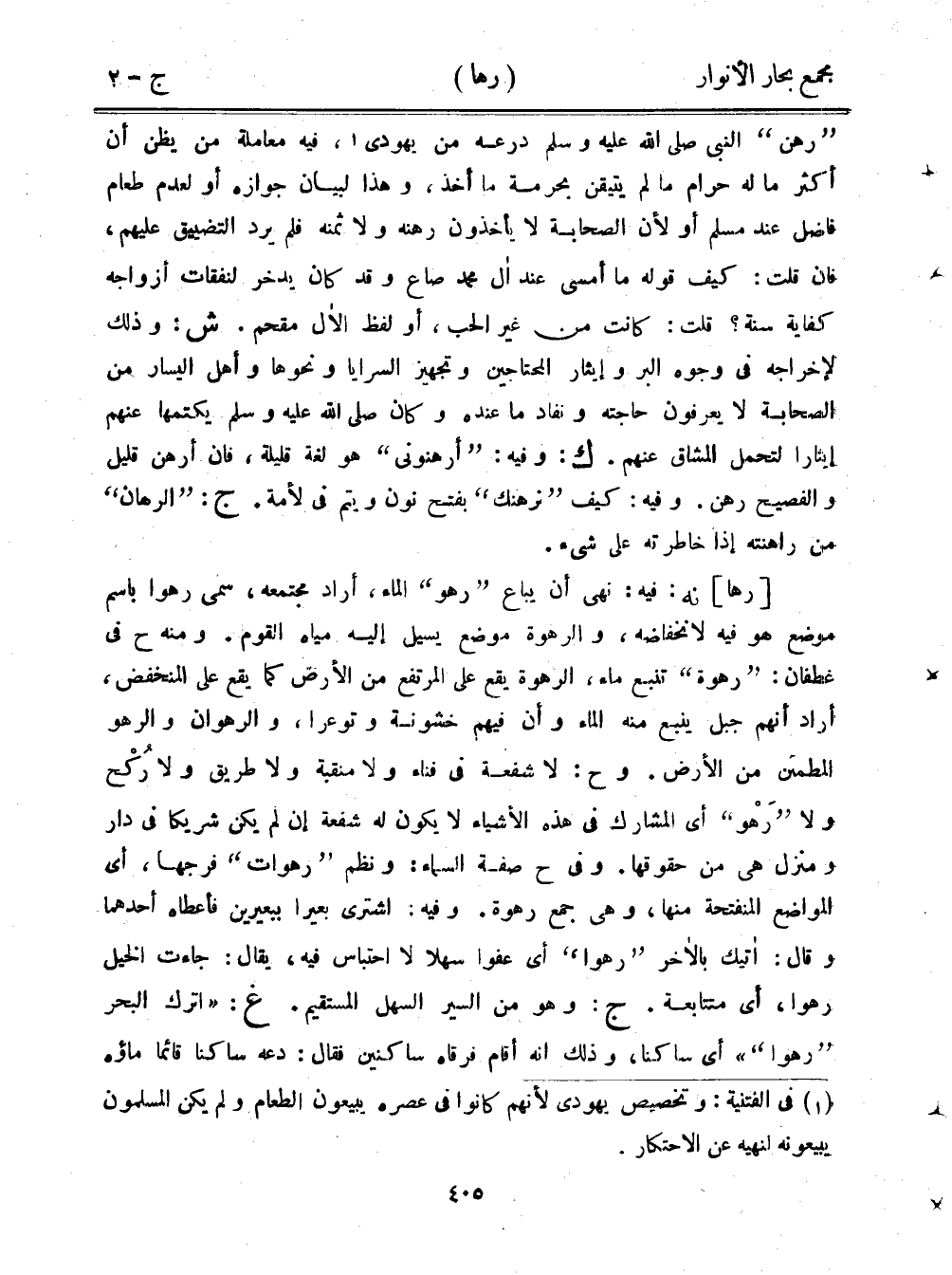 "رهن" النبي صلى الله عليه وسلم درعه من يهودي، فيه معاملة من يظن أن أكثر ما له حرام ما لم يتيقن بحرمة ما أخذ، وهذا لبيان جوازه أو لعدم طعام فاضل عند مسلم أو لأن الصحابة لا يأخذون رهنه ولا ثمنه فلم يرد التضييق عليهم، فإن قلت: كيف قوله ما أمسى عند أل محمد صاع وقد كان يدخر لنفقات أزواجه كفاية سنة؟ قلت: كانت من غير الحب، أو لفظ الأل مقحم. ش: وذلك لإخراجه في وجوه البر وإيثار المحتاجين وتجهيز السرايا ونحوها وأهل اليسار من الصحابة لا يعرفون حاجته ونفاد ما عنده وكان صلى الله عليه وسلم يكتمها عنهم إيثارًا لتحمل المشاق عنهم. ك: وفيه: "أرهنوني" هو لغة قليلة، فإن أرهن قليل والفصيح رهن. وفيه: كيف "نرهنك" بفتح نون ويتم في لأمة. ج: "الرهان" من راهنته إذا خاطرته على شيء.