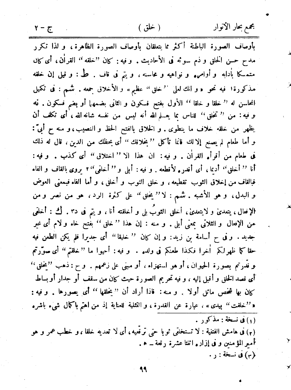 بأوصاف الصورة الباطنة أكثر مما يتعلقان بأوصاف الصورة الظاهرة، ولذا تكرر مدح حسن الخلق وذم سوئه في الأحاديث. وفيه: كان "خلقه" القرآن، أي كان متمسكًا بأدابه وأوامره ونواهيه ومحاسنه، ويتم في قاف. ط: وقيل إن خلقه مذكورة فيه نحو "وإنك لعلى "خلق" عظيم" والأخلاق جمعه. شم في تكميل المحاسن له "خلقا وخلقا" الأول بفتح فسكون والثاني بضمهما أو بضم فسكون. نه وفيه: من "تخلق" للناس بما يعلم الله أنه ليس من نفسه شانه الله، أي تكلف أن يظهر من خلقه خلاف ما ينطوي. الخلاق بالفتح الحظ والنصيب، ومنه ح أبيّ: وأما طعام لم يصنع إلا لك فإنما تأكل "بخلاقك" أي بحظك من الدين، قال له ذلك في طعام من أقرأه القرآن. وفيه: أن هذا إلا "اختلاق" أي كذب. وفيه: أنا "أخلق" أديما، أي أقدره لأقطعه. وفيه: أبلى و"أخلقي" يروي بالقاف والفاء فبالقاف من إخلاق الثوب تقطيعه، وخلق الثوب وأخلق، وأما الفاء فبمعنى العوض والبدل، وهو الأشبه. شم: لا "يخلق" على كثرة الرد، هو من نصر ومن الإفعال، يتعدى ولا يتعدى، أخلق الثوب بلى وأخلقته أنا، ويتم في د. ك: أخلقي من الإفعال والثلاثي بمعنى أبلى. ومنه: إن هذا "خلق" بفتح خاء ولام أي غير جديد. وفي ح أسامة بن زيد: وإن كان "خليقا" أي جديرًا فلم يكن الطعن فيه حقًا كما ظهر لكم أخرا فكذا طعنكم في ولده. وفيه: أحيوا ما "خلقتم" أي صورتم وقدرتم بصورة الحيوان، أو هو استهزاء، أو مبني على زعمهم. وح: ذهب "يخلق" أي قصد الخلق وأقبل إليه، وفيه تحريم الصورة حيث كان من سقف أو جدر أو بساط كان بها شخص ماثل أو لا. ومنه: فإذا أراد أن "يخلقها" أي يصورها. وفيه: ""خلقت" بيدي"، عبارة عن القدرة، والتثنية للعناية إذ من اهتم بإكمال شيء باشره