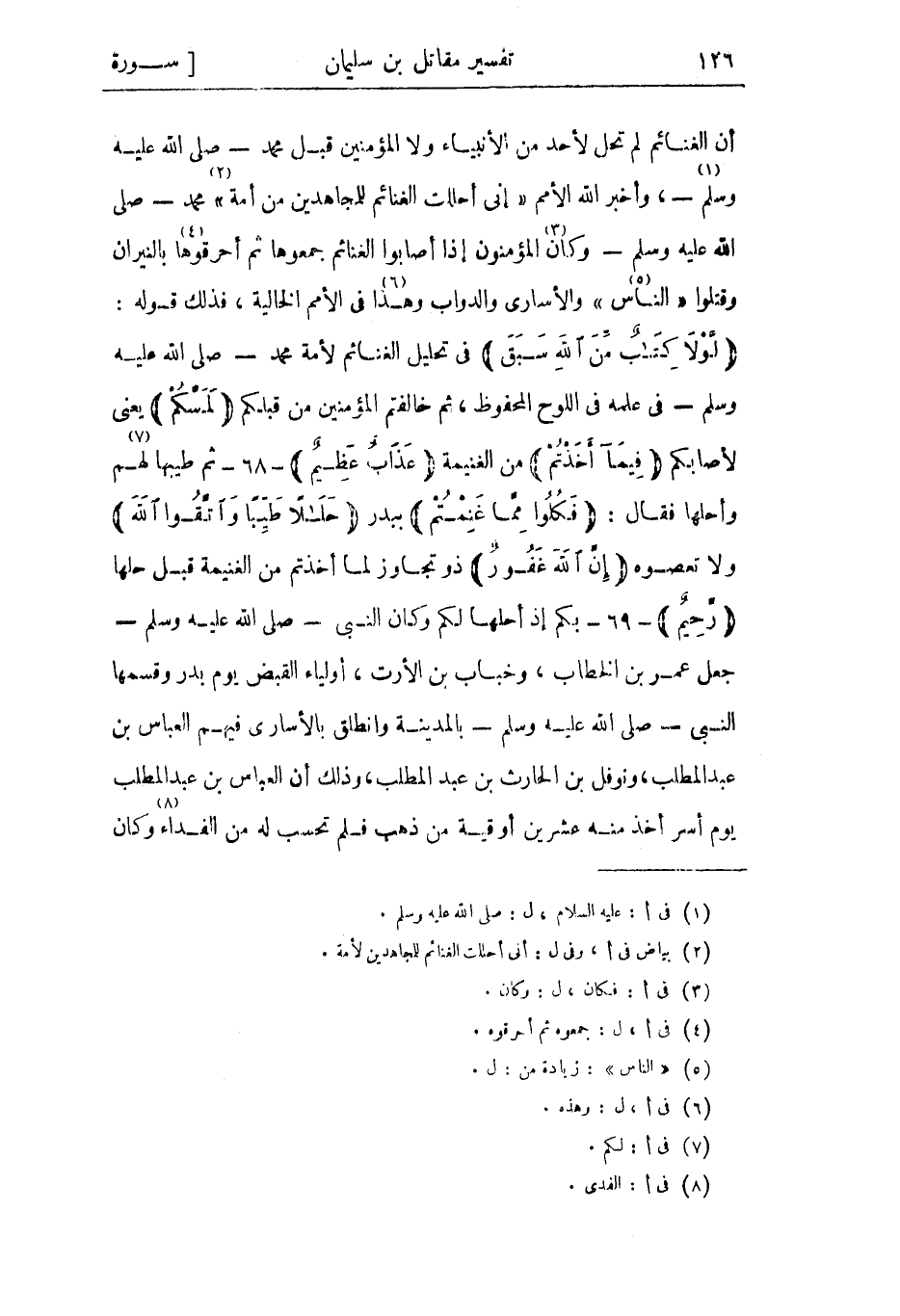 أن العباس بن عبد المطلب يوم أسر أخذ منه عشرين أوقية من ذهب فلم تحسب له من الفداء «8» وكان