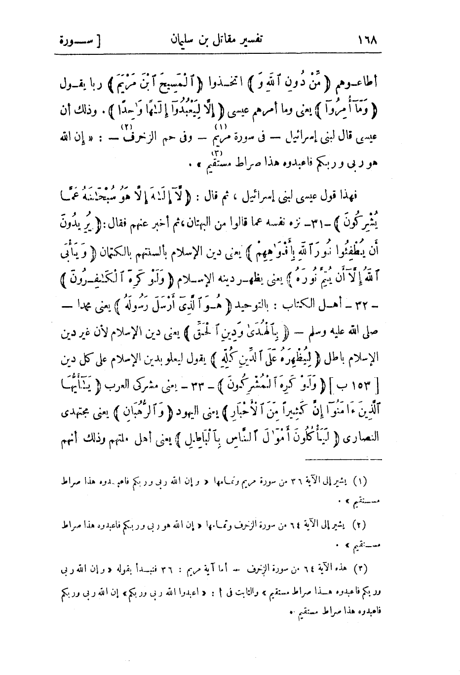 (1) يشير إلى الآية 36 من سورة مريم وتمامها «وَإِنَّ اللَّهَ رَبِّي وَرَبُّكُمْ فَاعْبُدُوهُ هَذَا صِراطٌ مُسْتَقِيمٌ» .