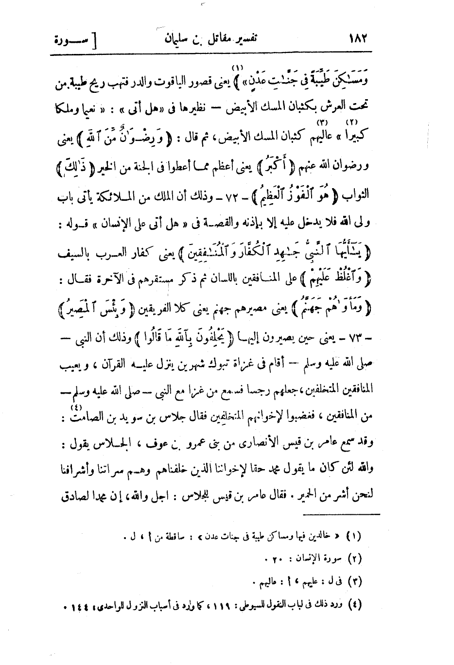 (4) ورد ذلك فى لباب النقول للسيوطي: 119، كما ورد فى أسباب النزول للواحدي: 144.