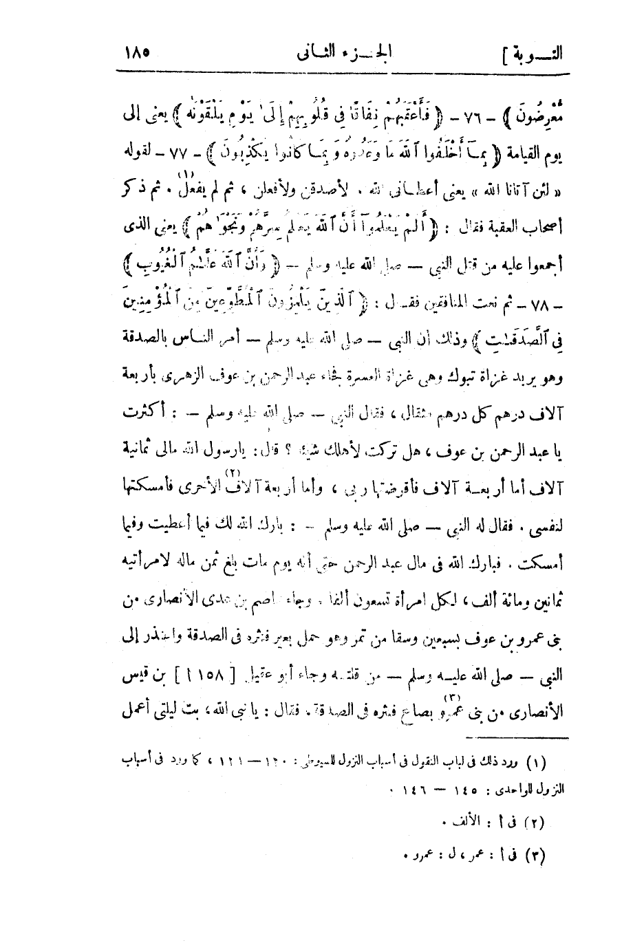 (1) ورد ذلك فى لباب النقول فى أسباب النزول للسيوطي: 120- 121، كما ورد فى أسباب النزول للواحدي: 145- 146.