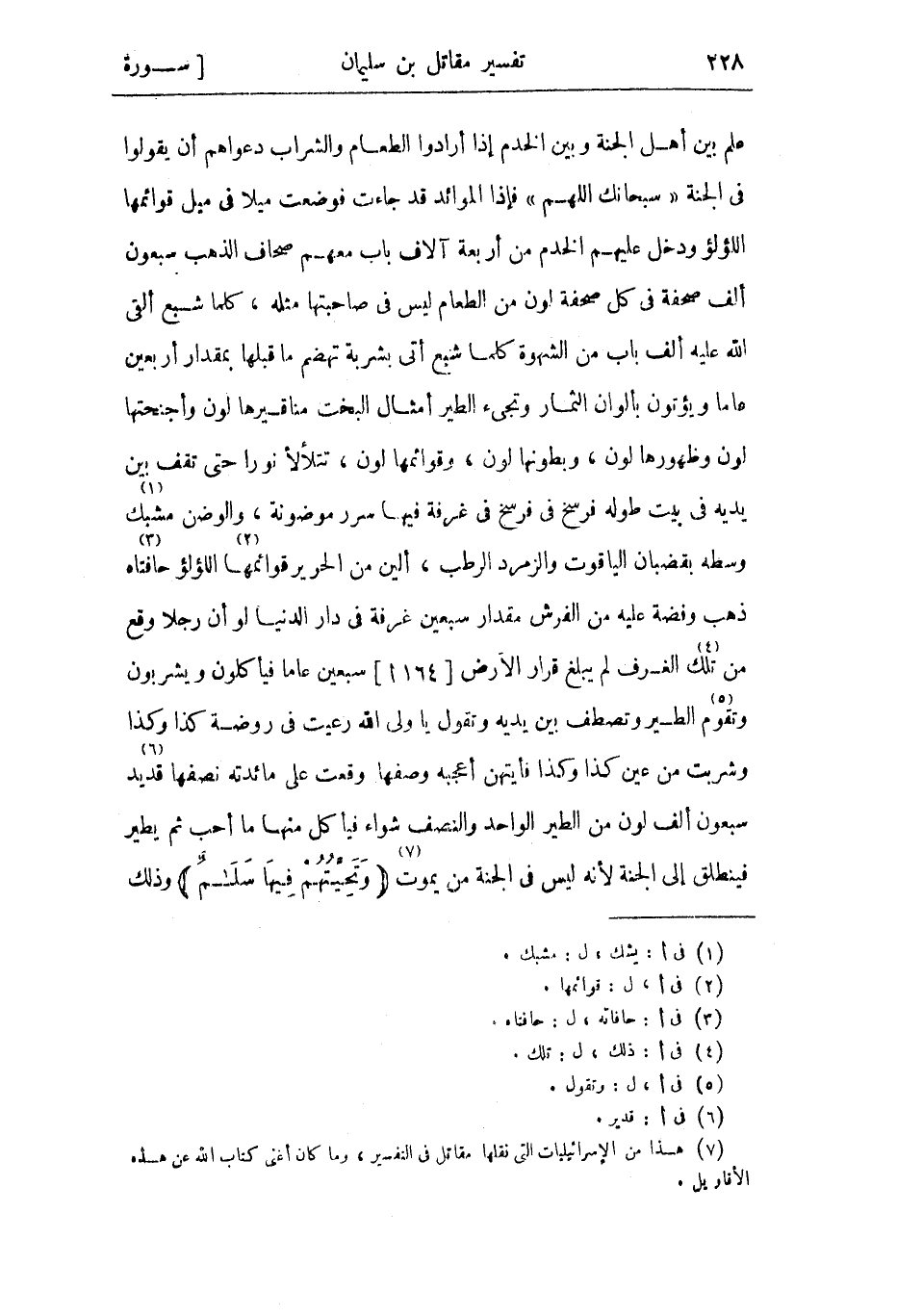 (7) هذا من الإسرائيليات التي نقلها مقاتل فى التفسير، وما كان أغنى كتاب الله عن هذه الأقاويل.