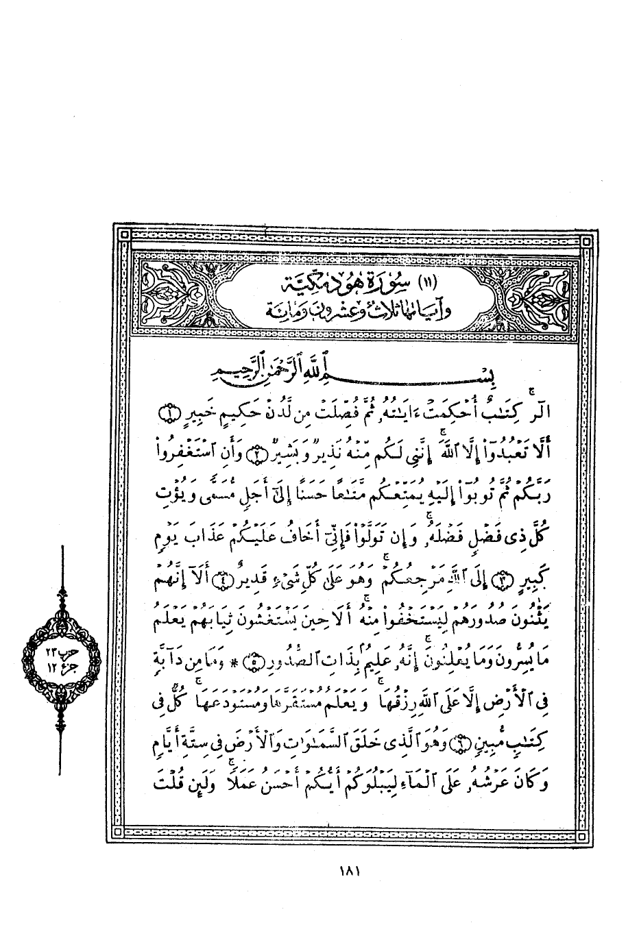 (11) سورة هود مكّيّة وآياتها ثلاث وعشرون ومائة بِسْمِ اللَّهِ الرَّحْمنِ الرَّحِيمِ